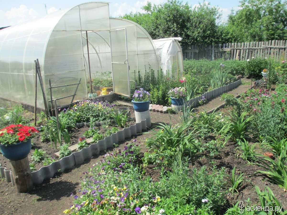 Цветник рядом с теплицей