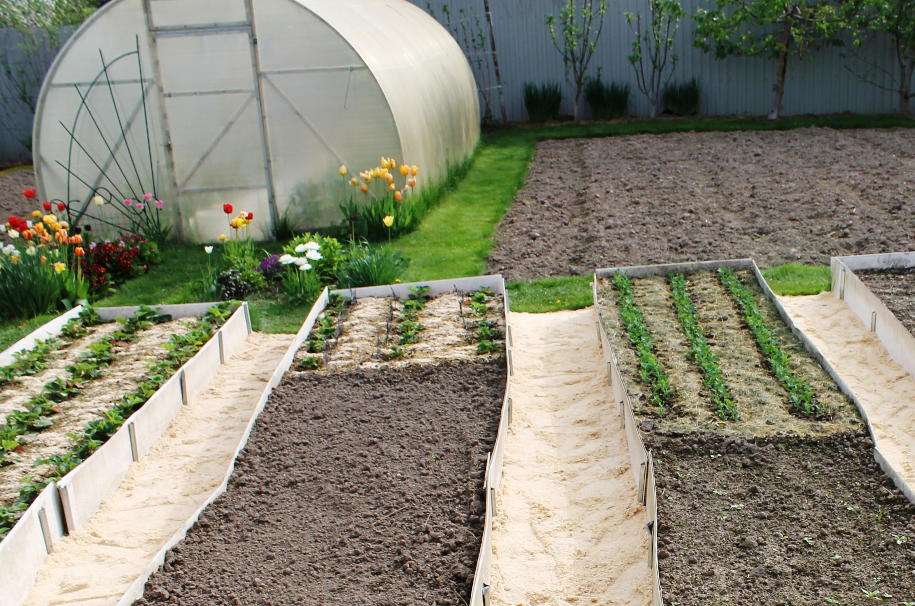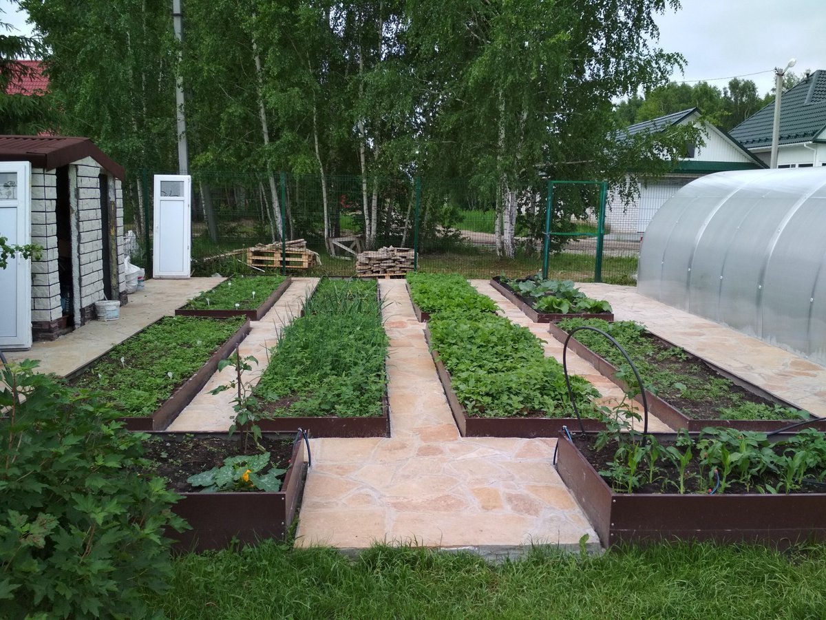 Грядки около теплицы