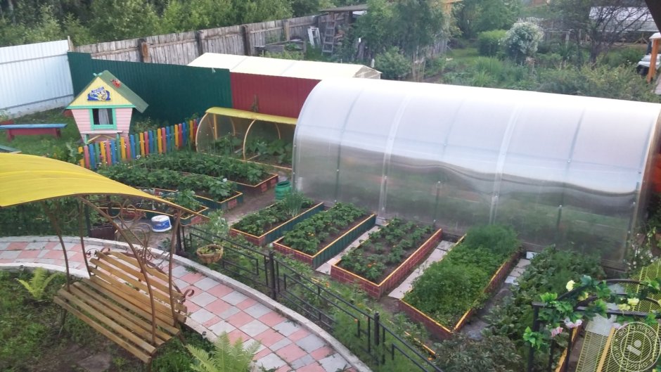 Теплица и грядки на участке