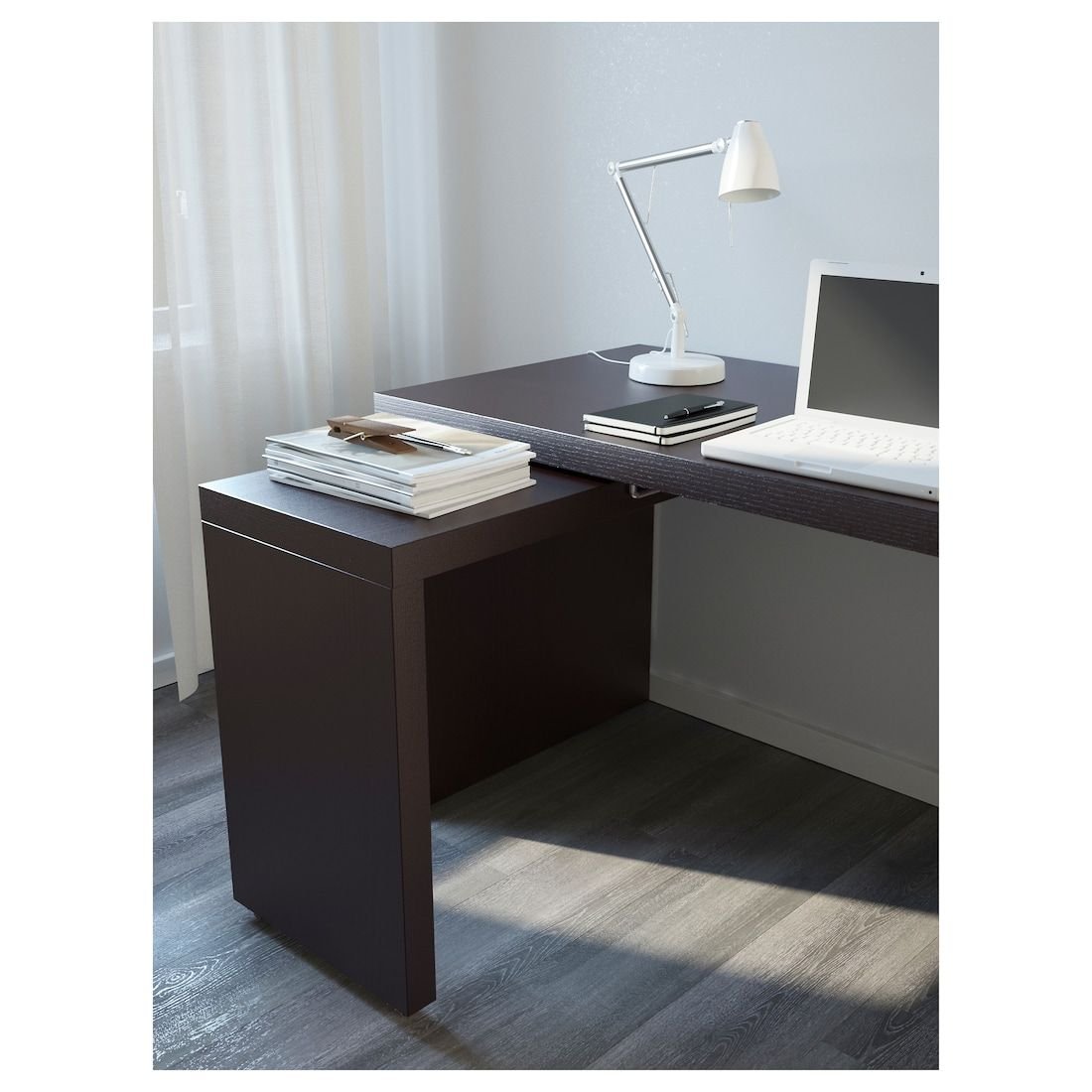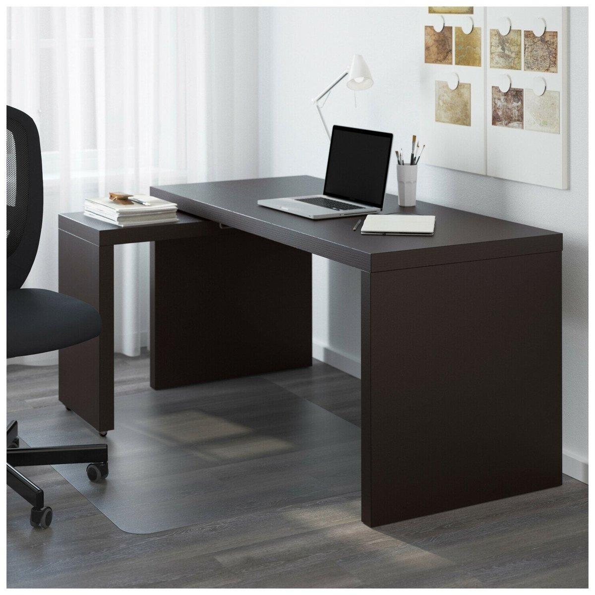 МАЛЬМ письменный стол с выдвижной панелью, черно-коричневый151x65 см