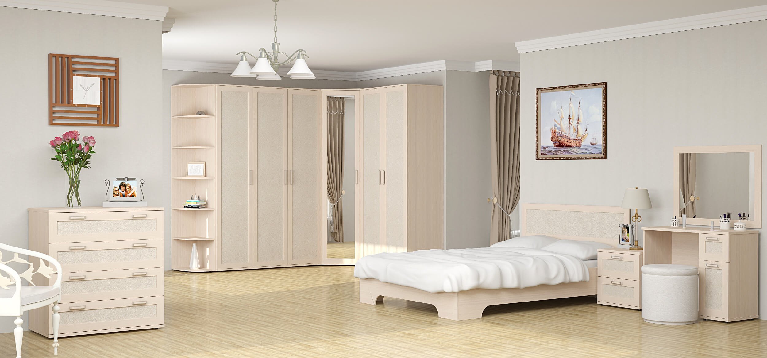 Спальный гарнитур лазурит белый дуб