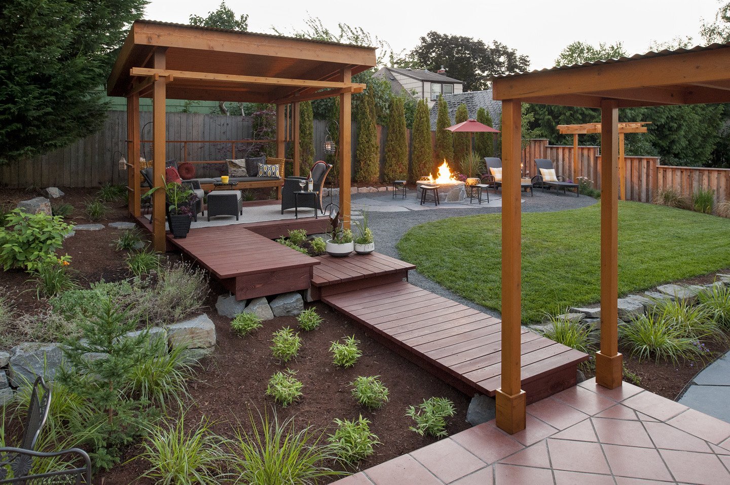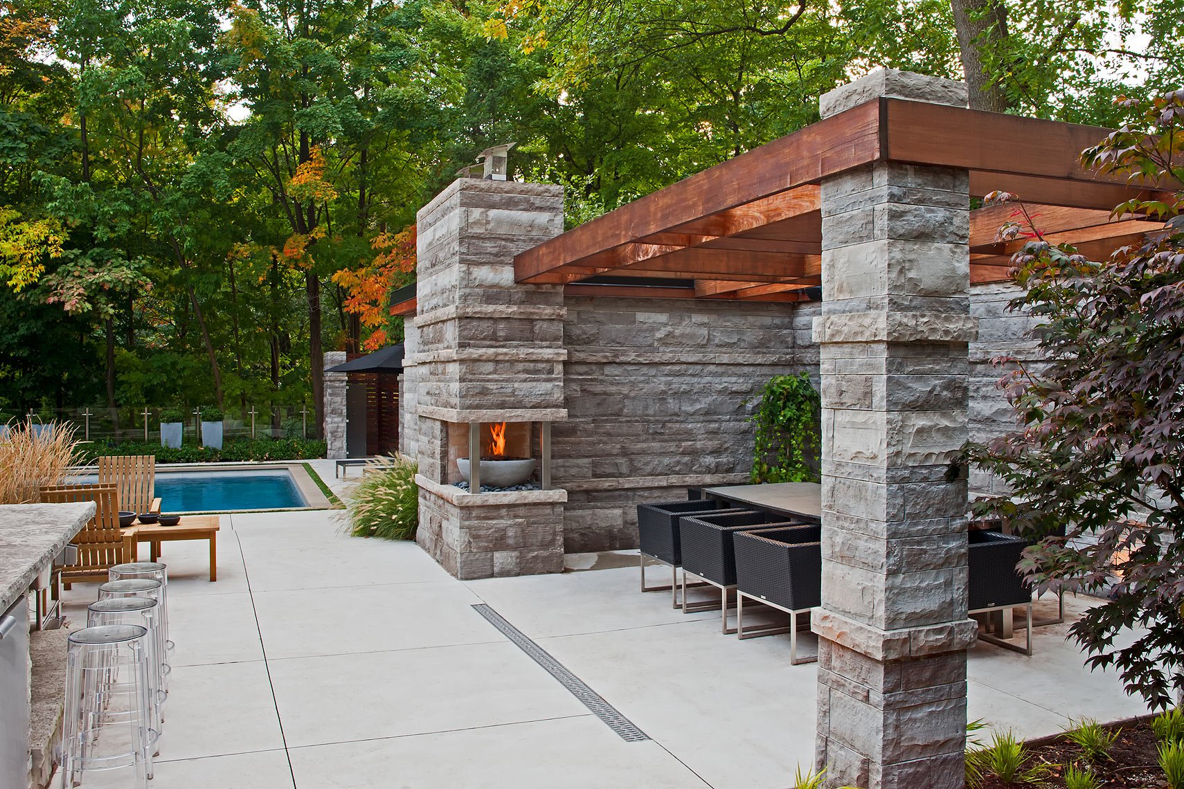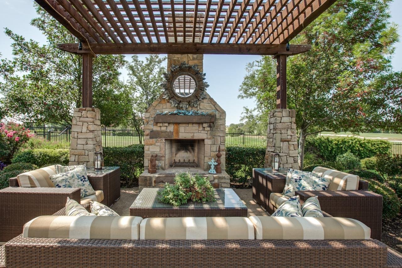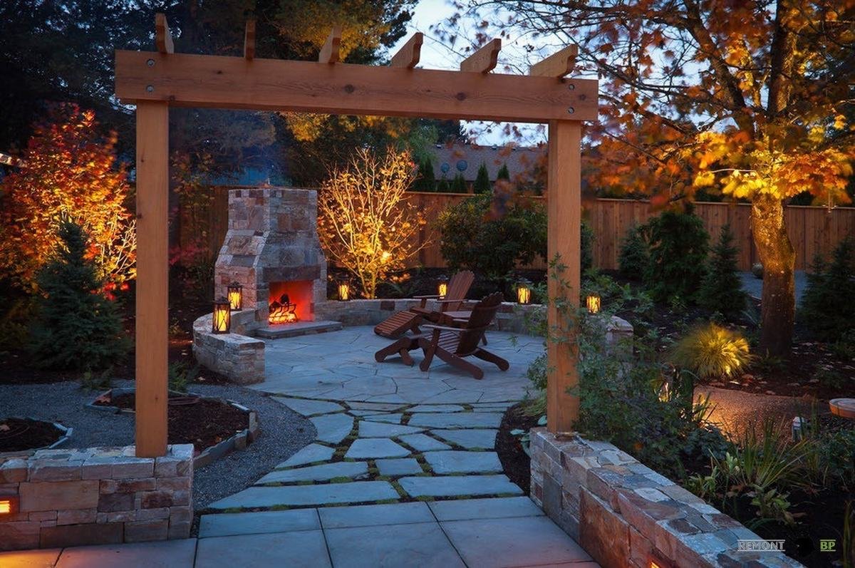 Пергола патио с костровищем