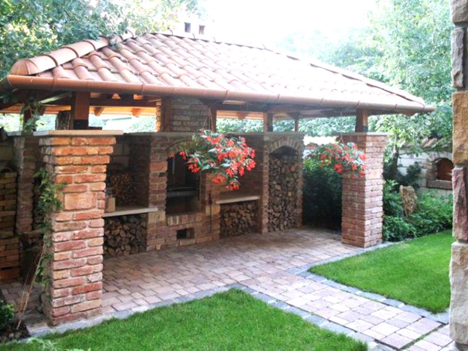 Мангальные зоны с беседкой в саду