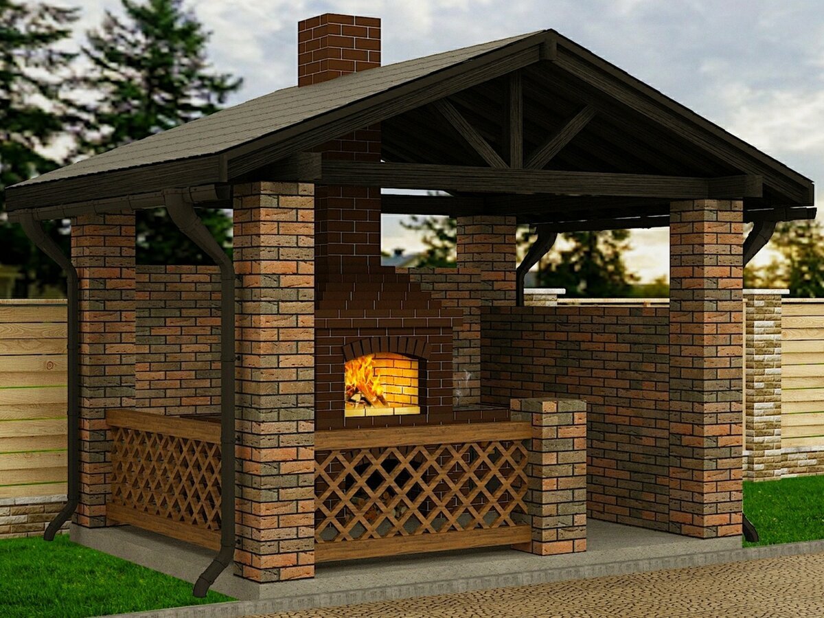 Беседка с мангалом из кирпича 5 на 5 метров
