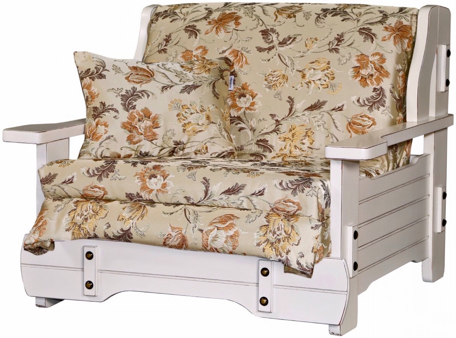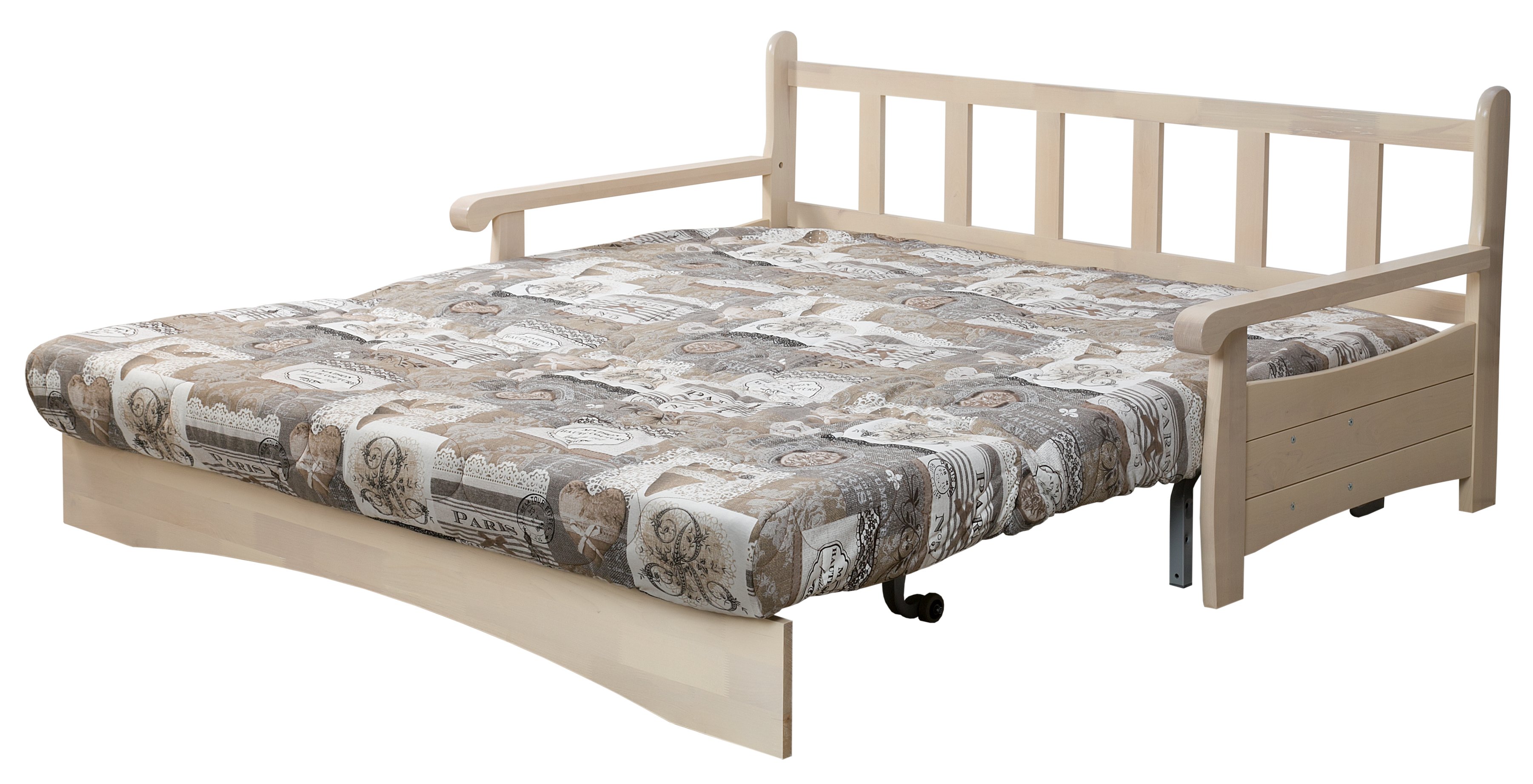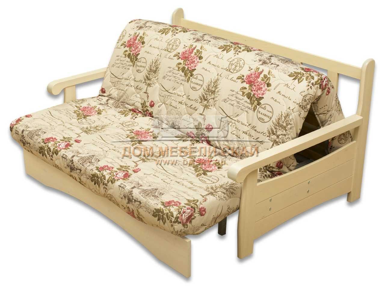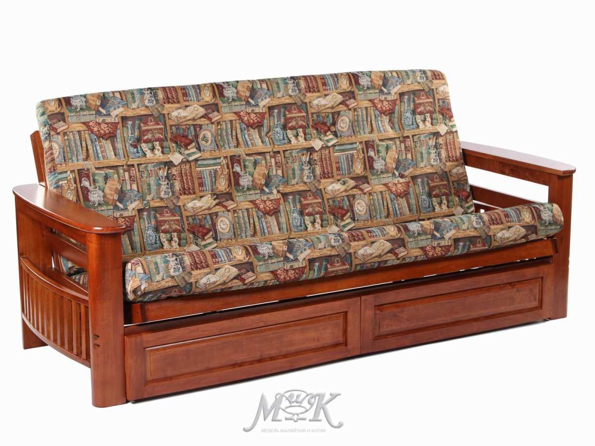 Диван аккордеон с деревянной спинкой и подлокотниками