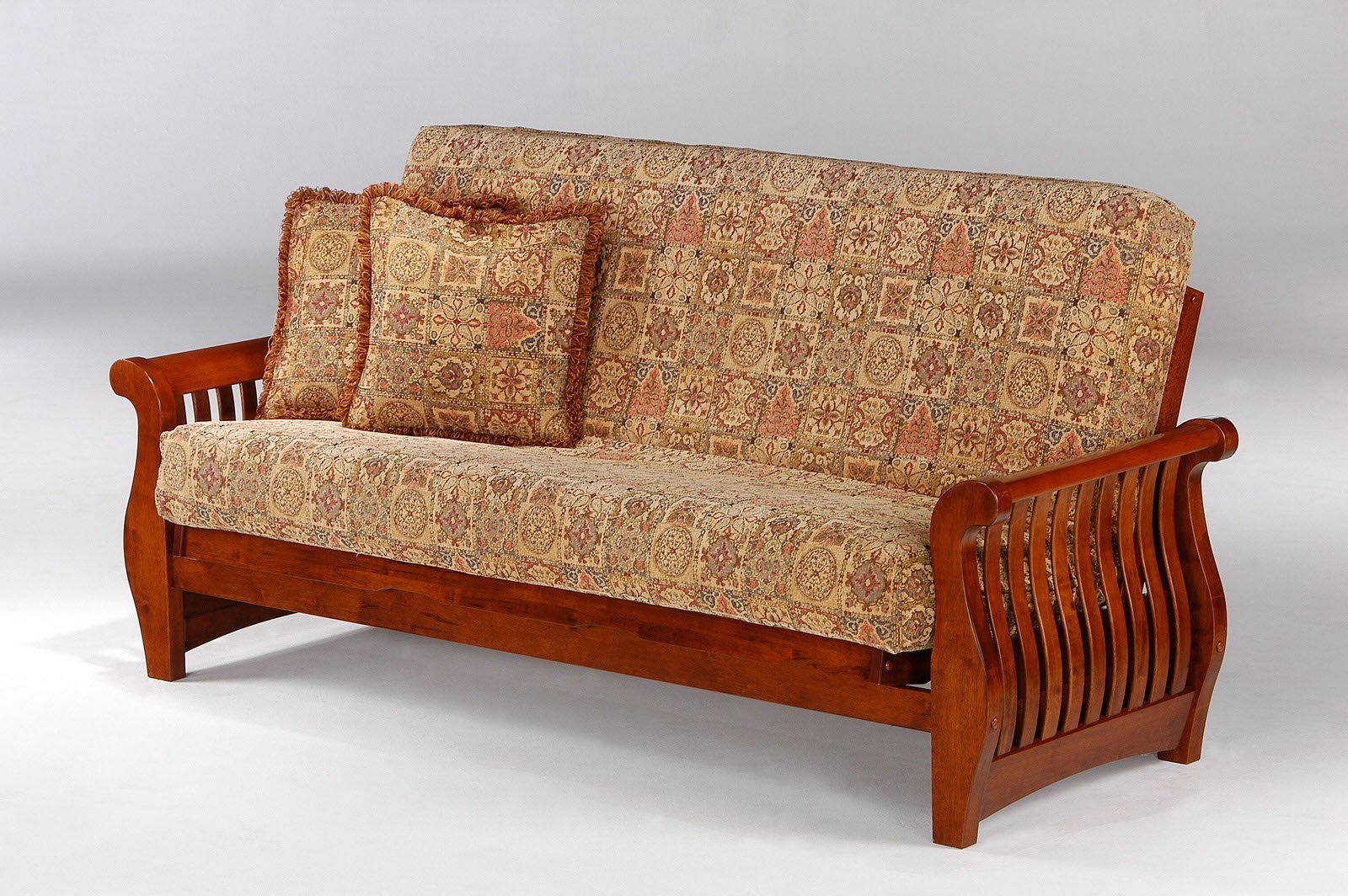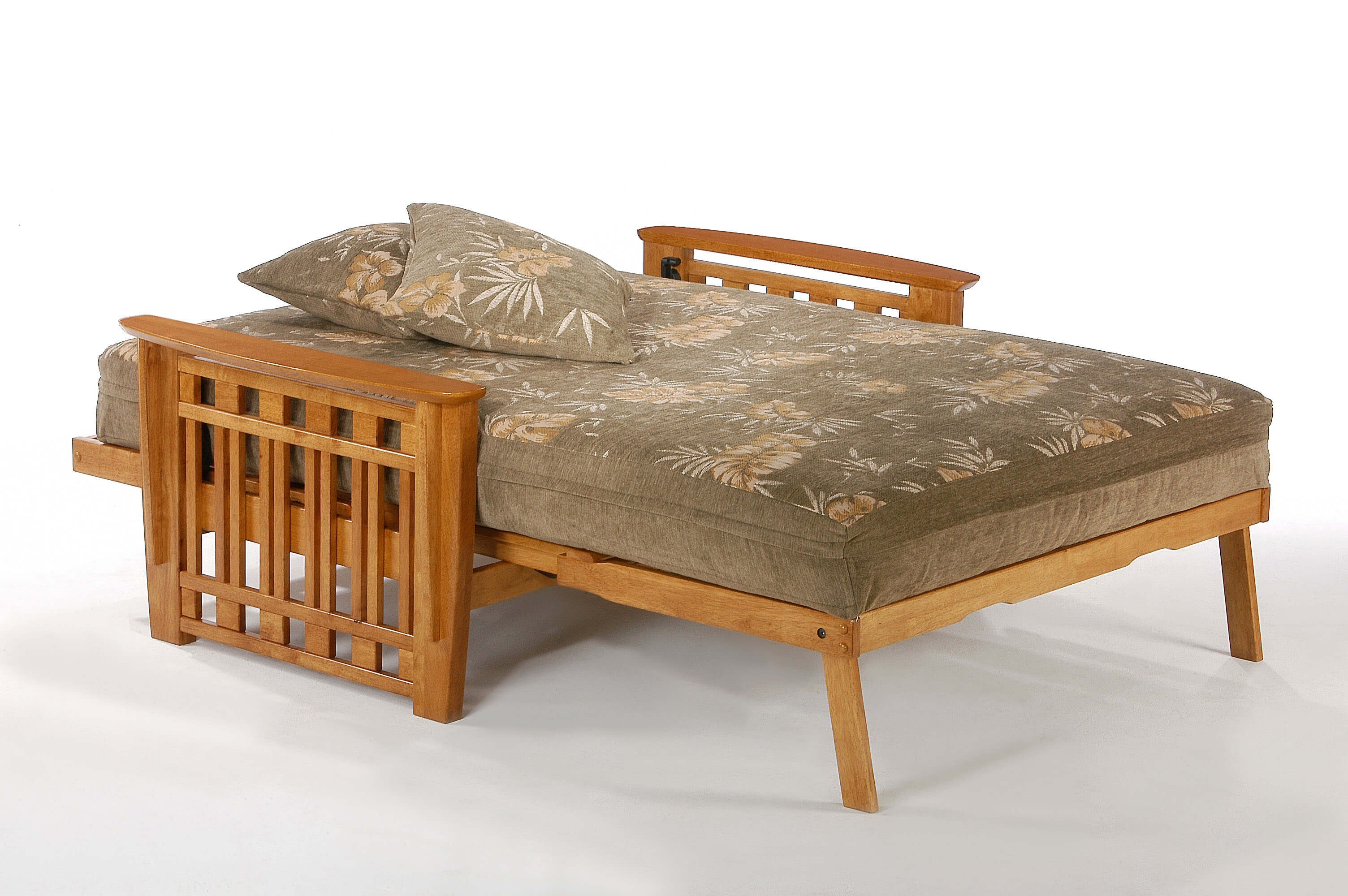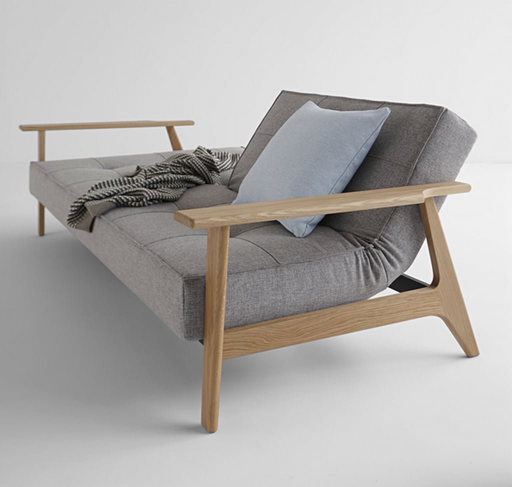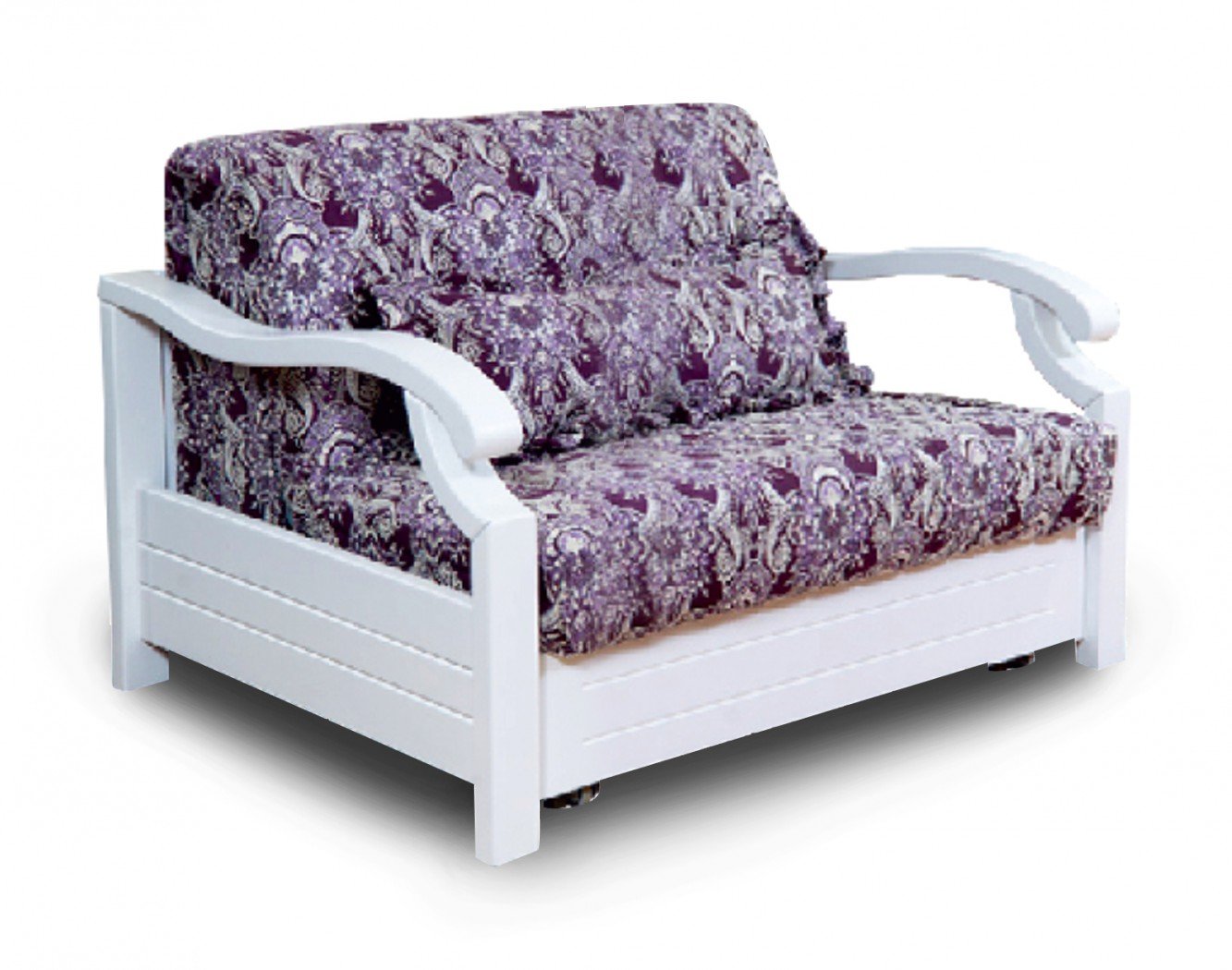 Диван аккордеон с деревянной спинкой и подлокотниками