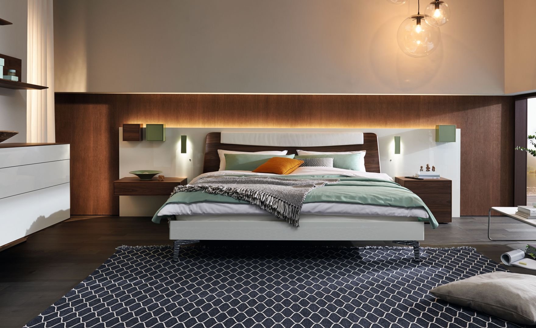 Изголовье кровати в спальне