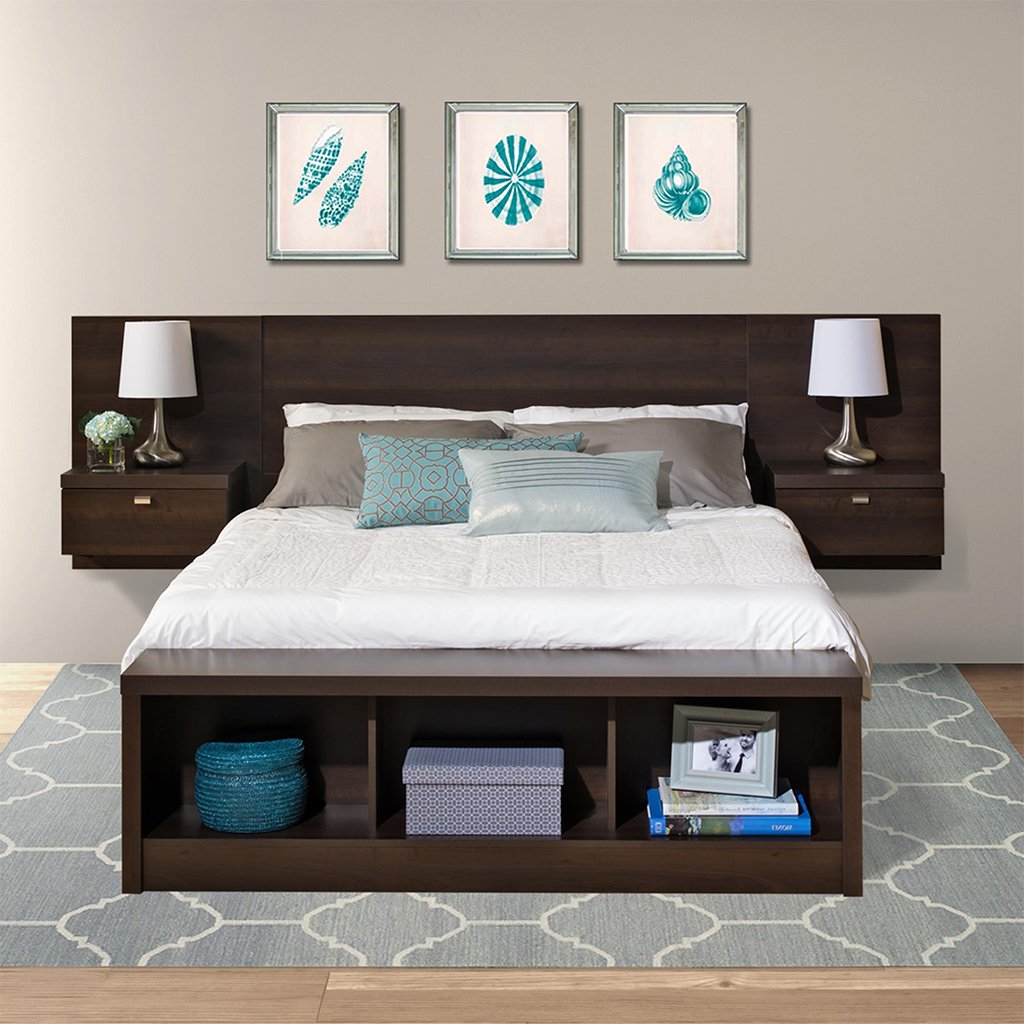 Кровать с подвесными тумбами в изголовье