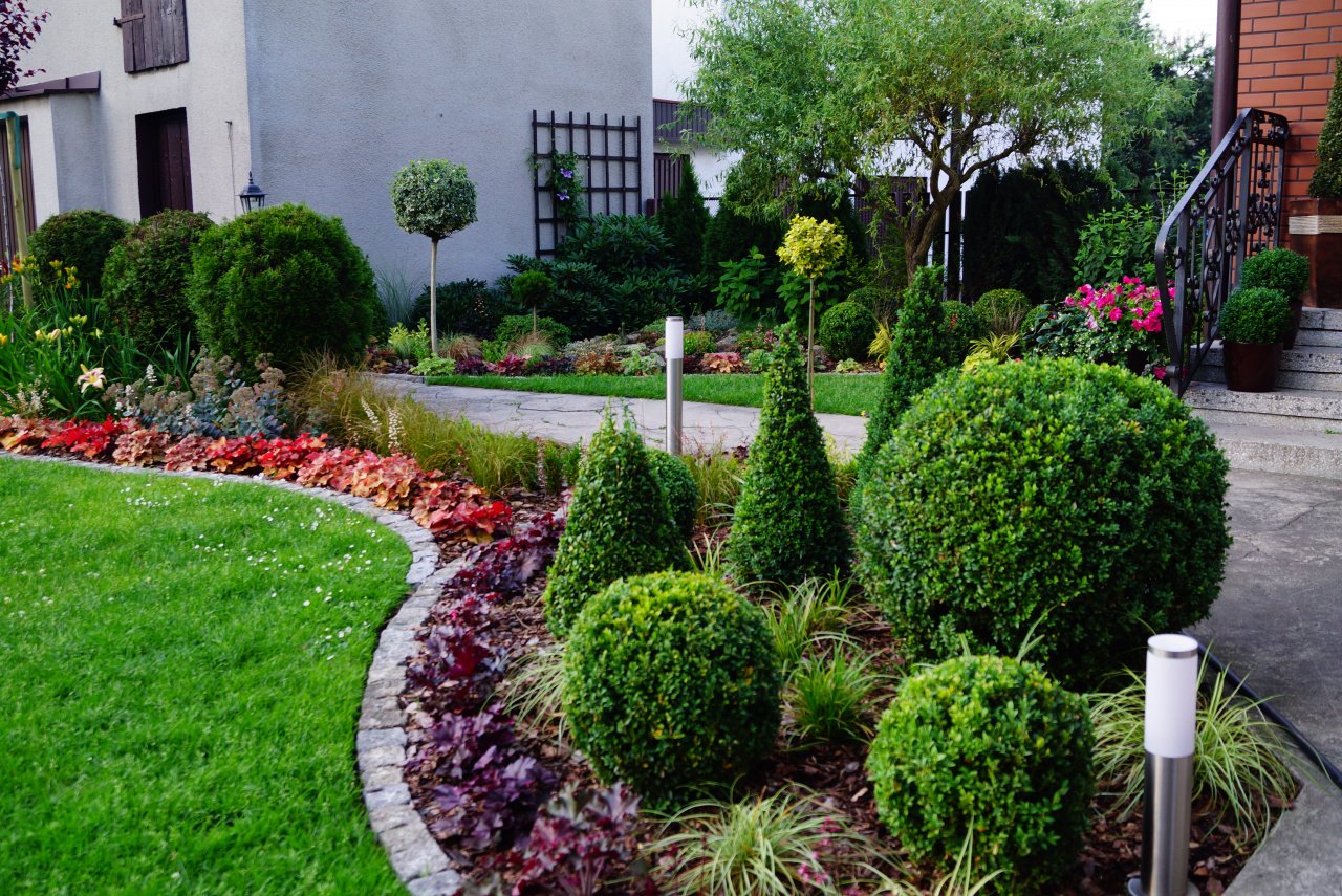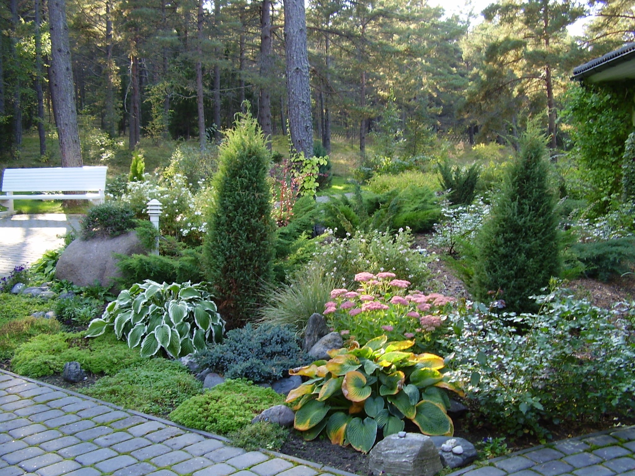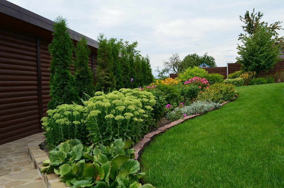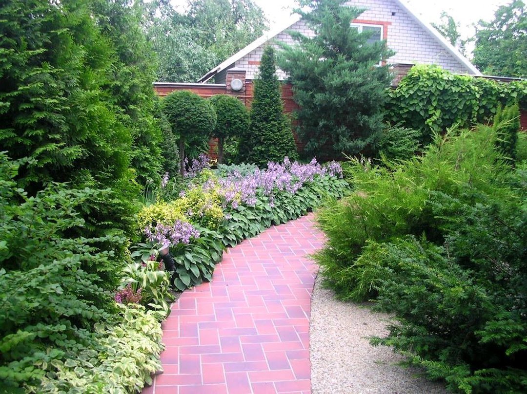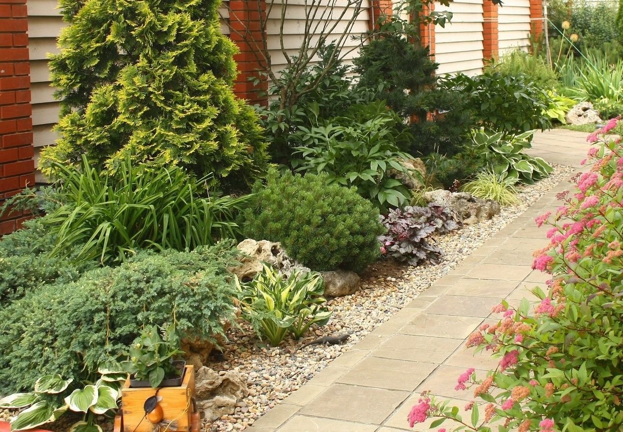 Миксбордер вдоль дорожки с хвойными