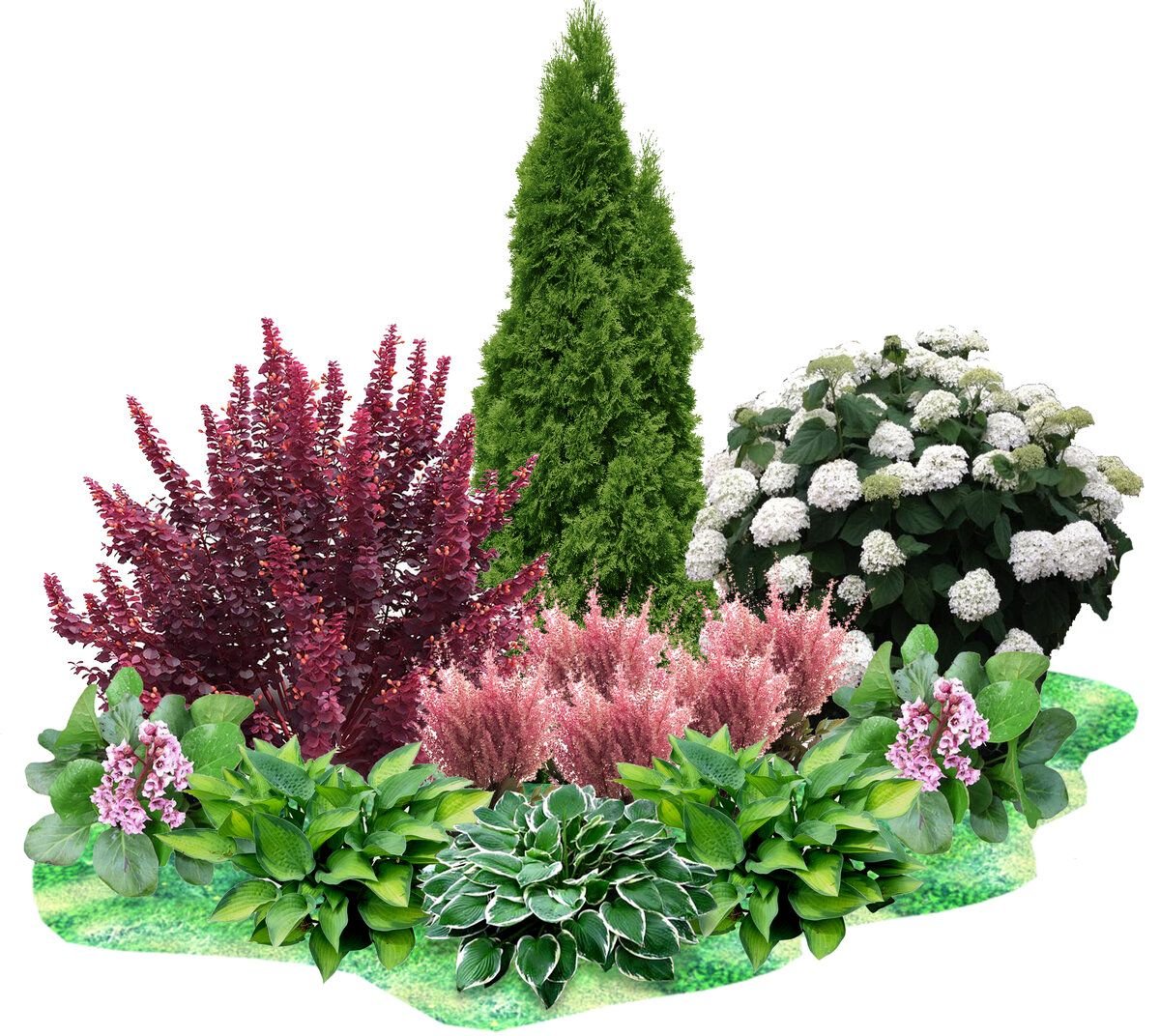 Миксбордер туя гортензия Барбарис можжевельник