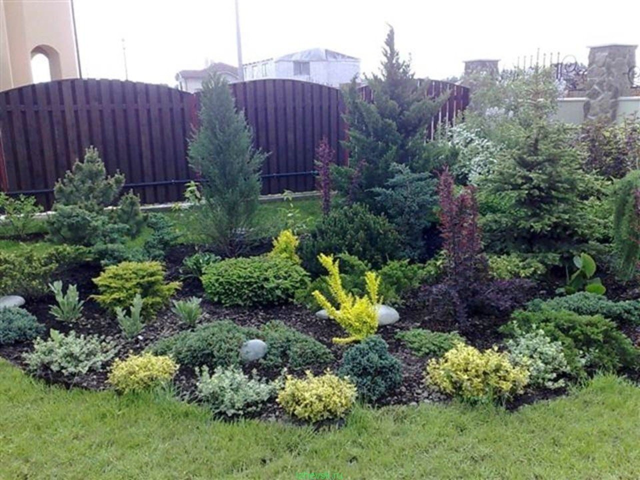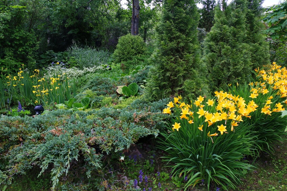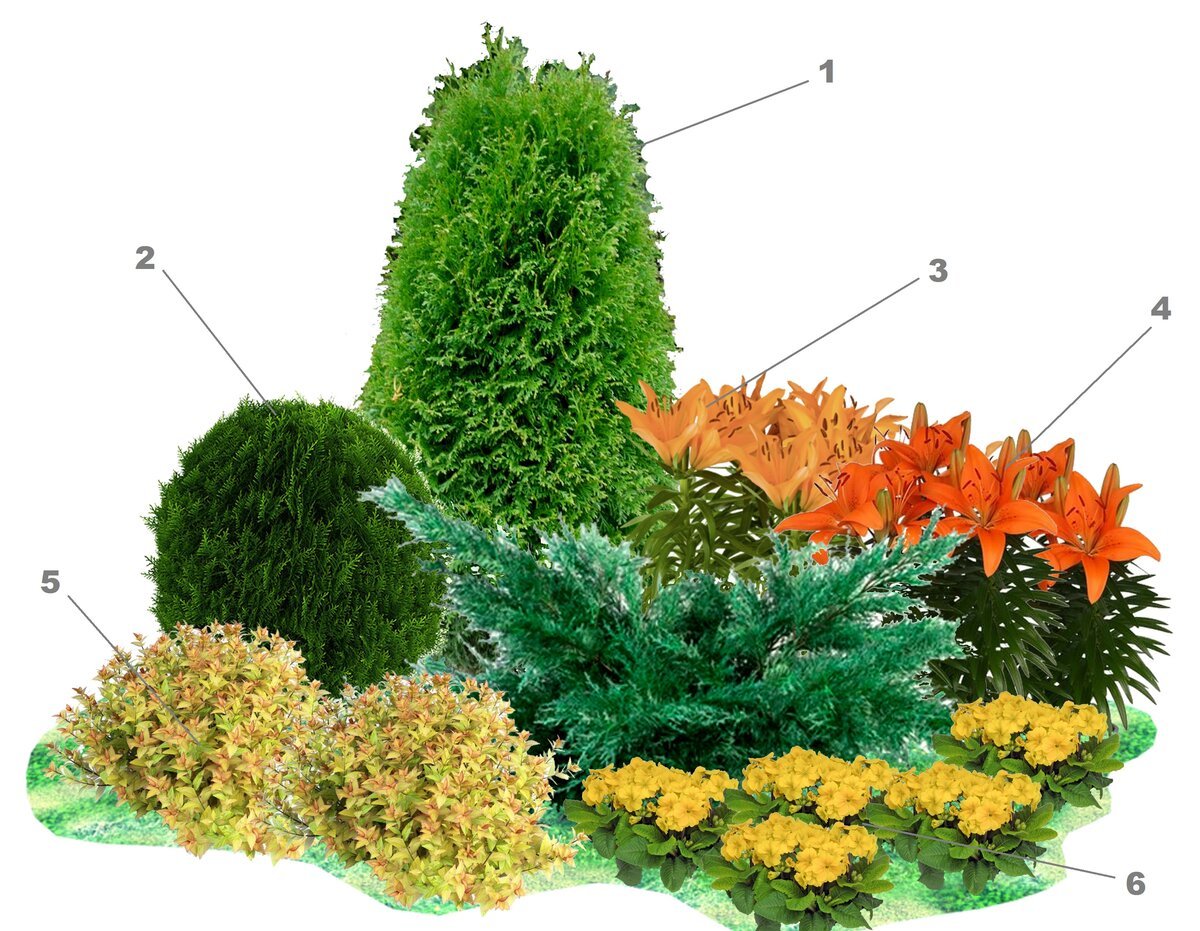 Миксбордер из хвойных и многолетников схемы