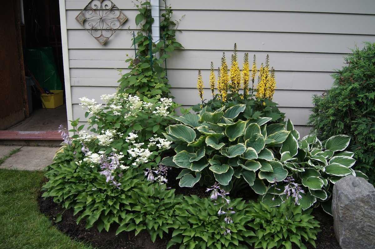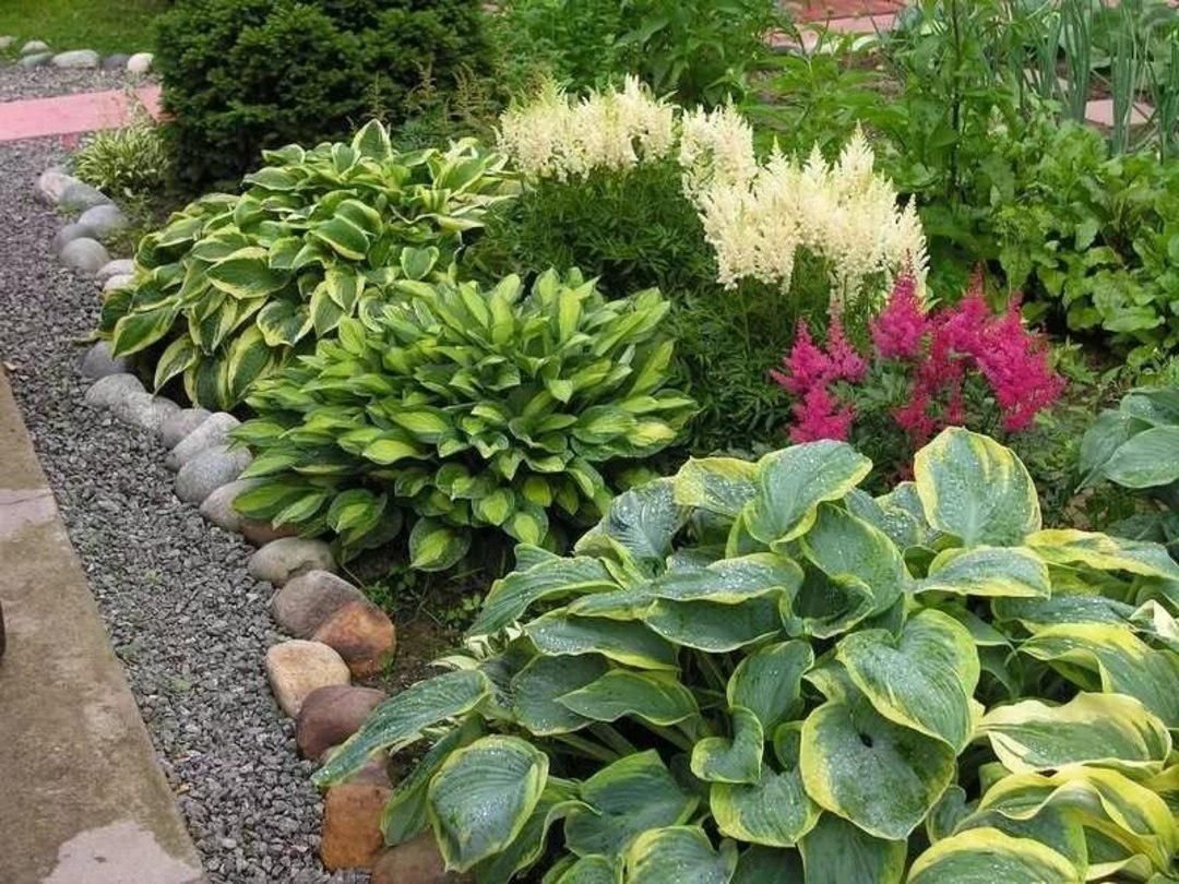Цветник Хоста астильба лилейник