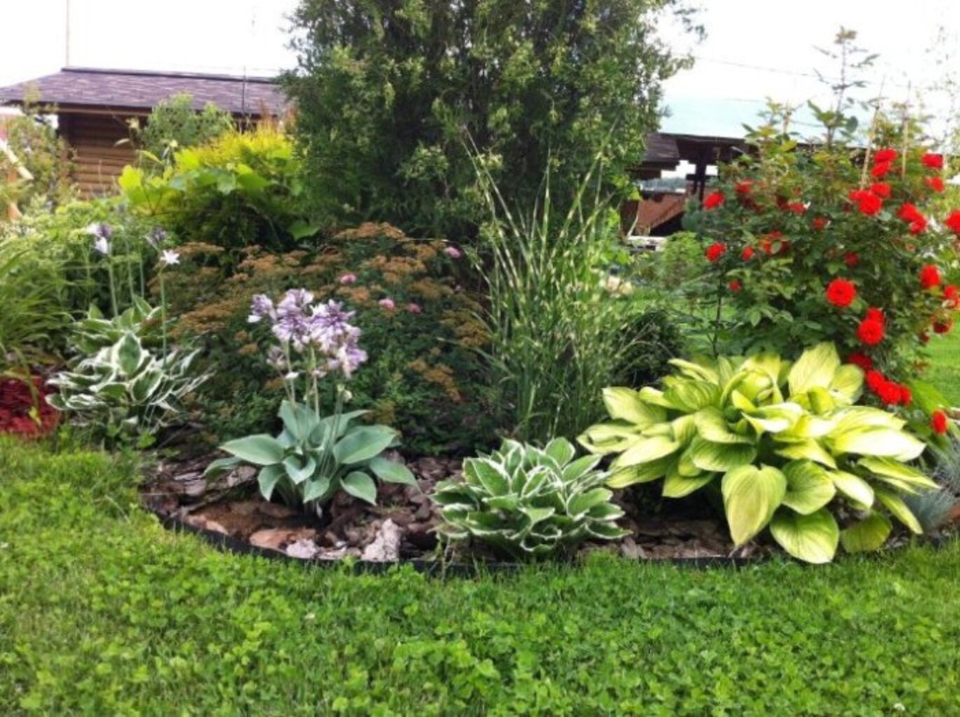 Клумба Хоста лилейник спирея