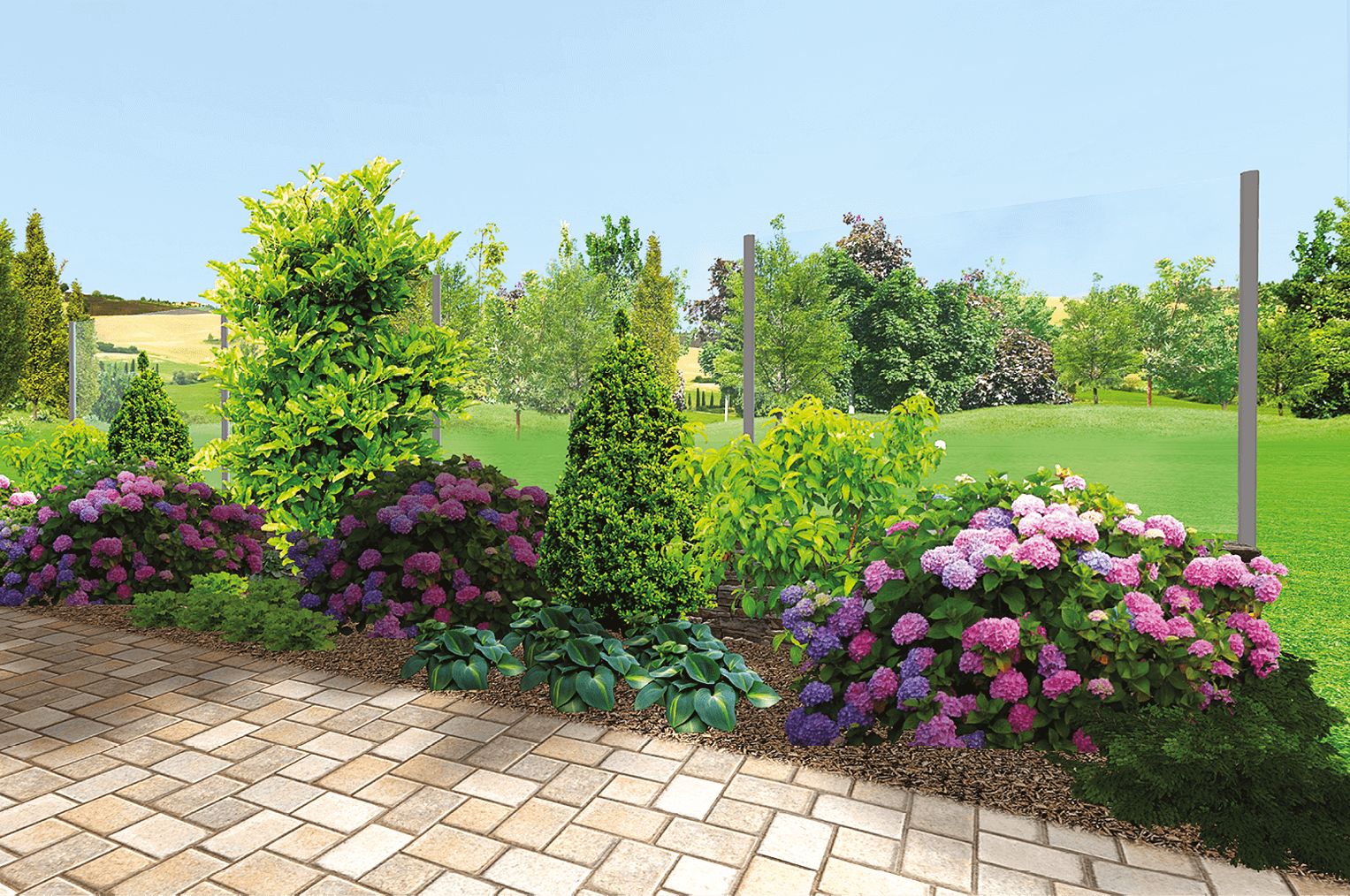 Миксбордер с гортензией метельчатой