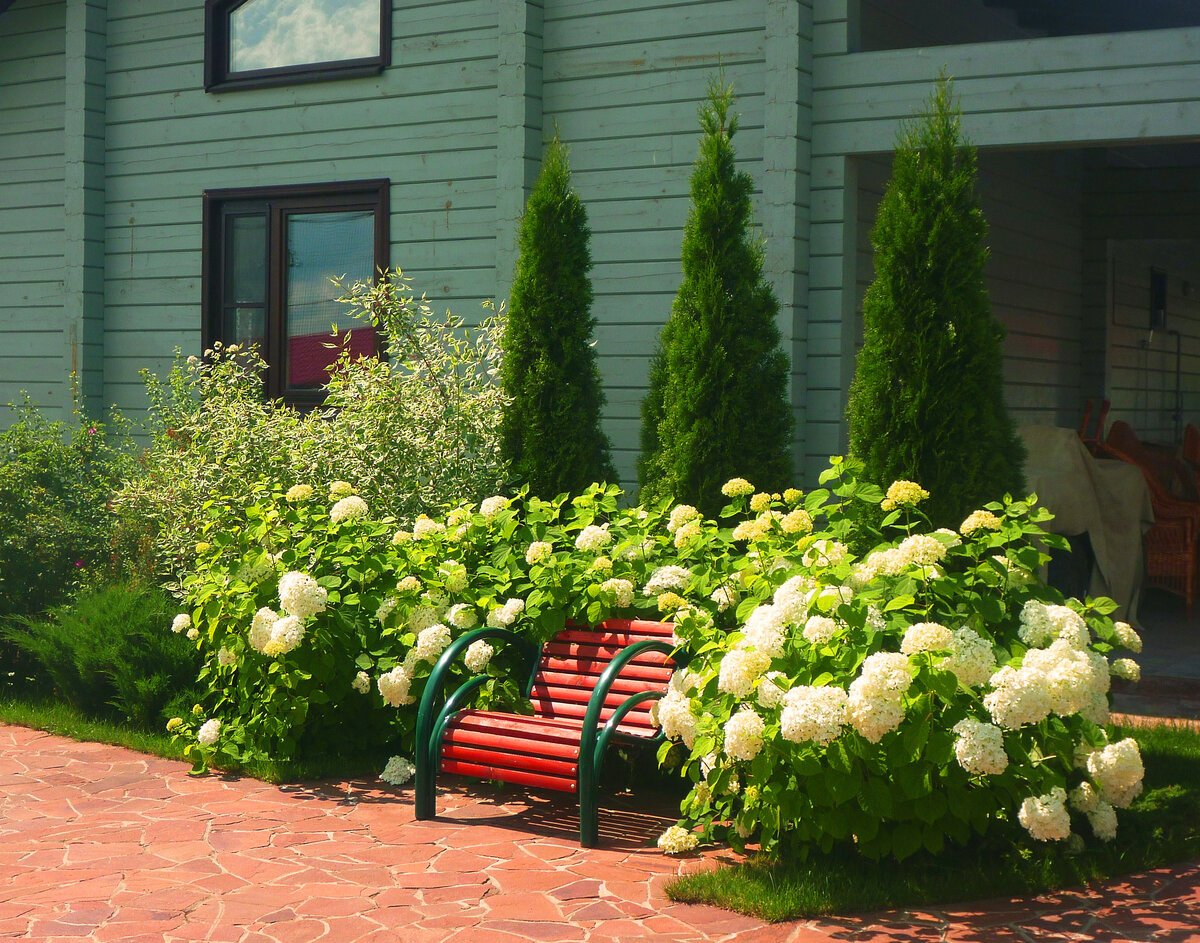 Миксбордер гортензия розы Хоста. Туя