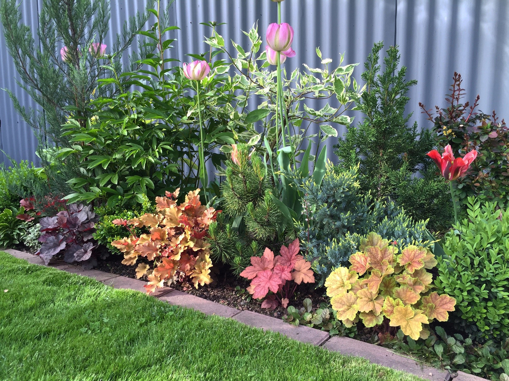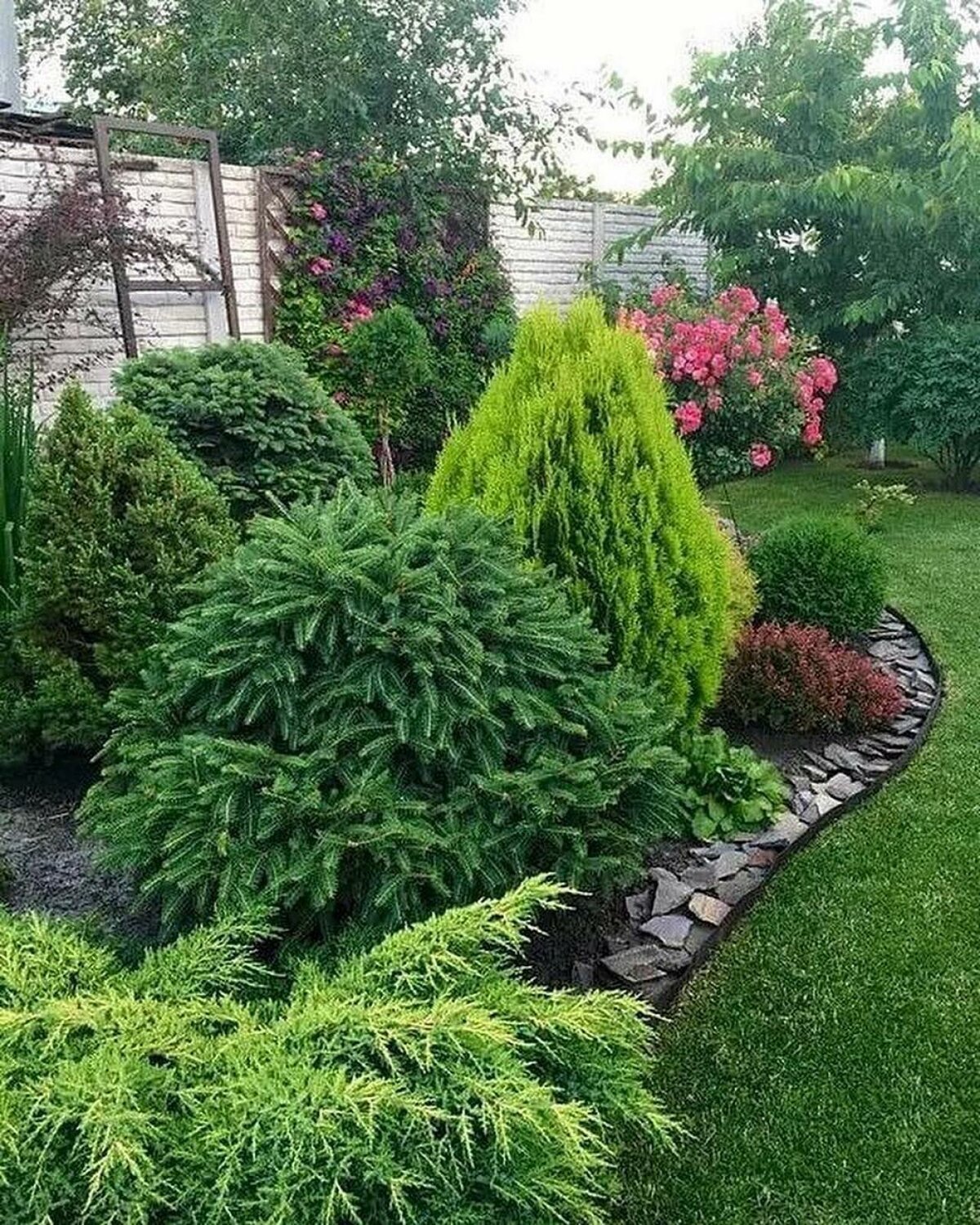 Миксбордер хвойники пионы розы