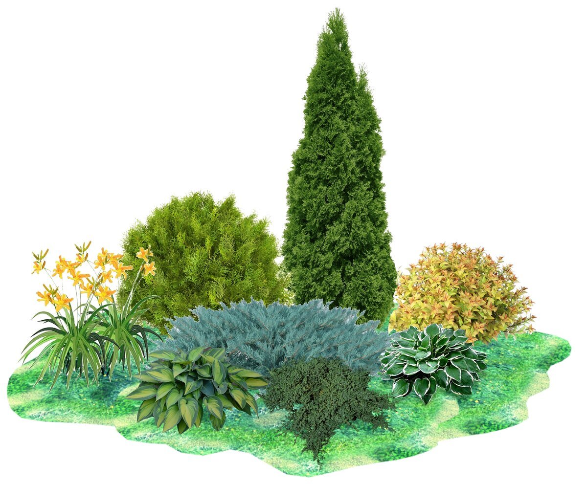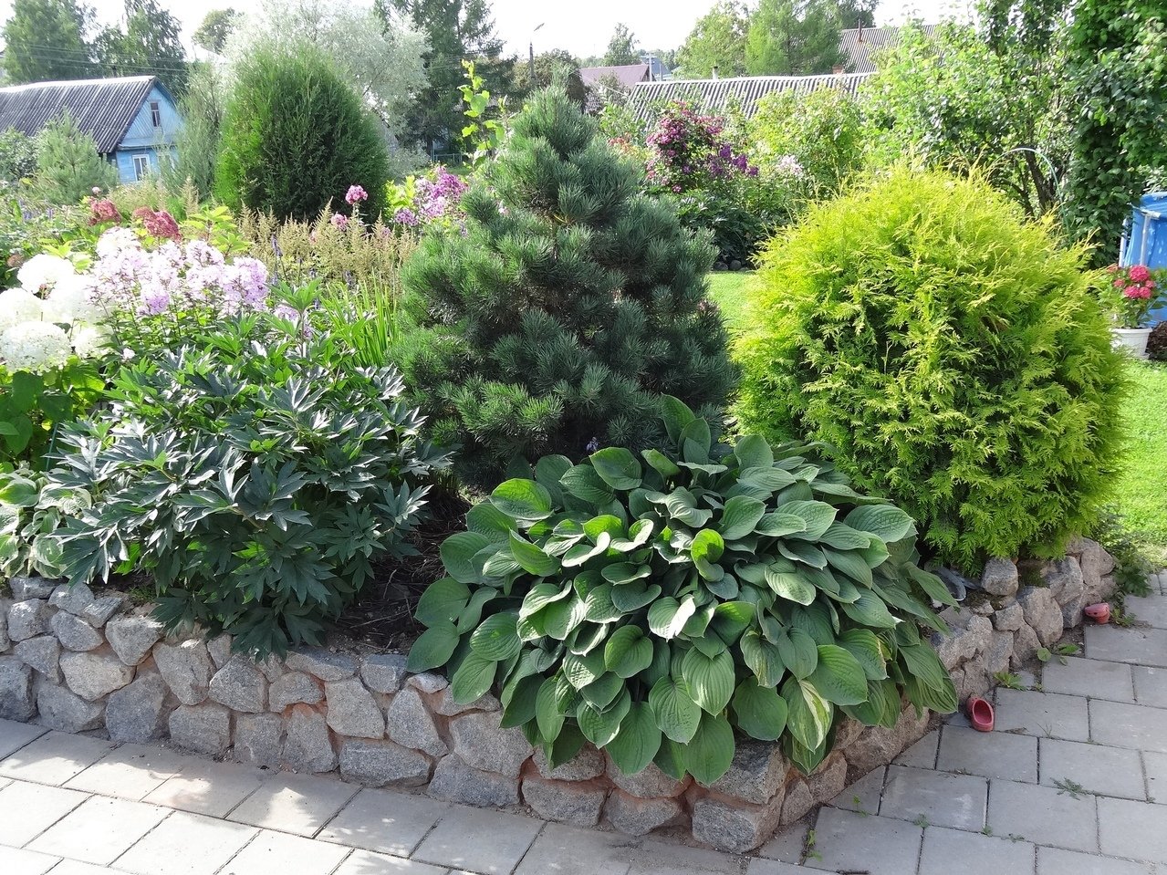Клумба туя Хоста можжевельник