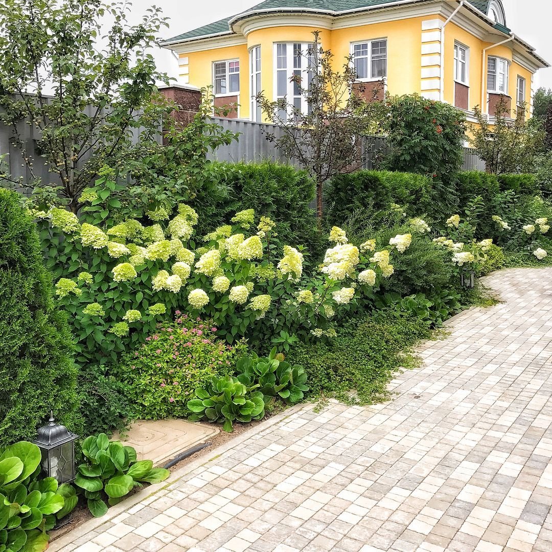Клумба с гортензией метельчатой