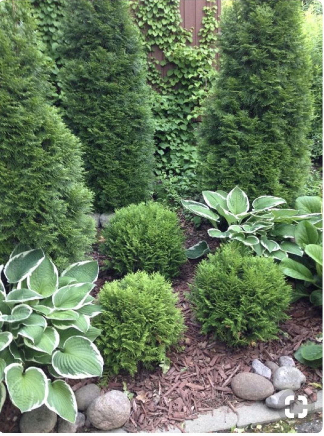 Клумба с туей и хостой