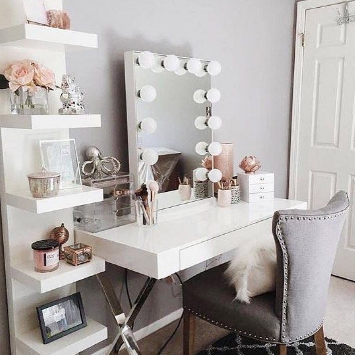 Стол с лампочками для макияжа