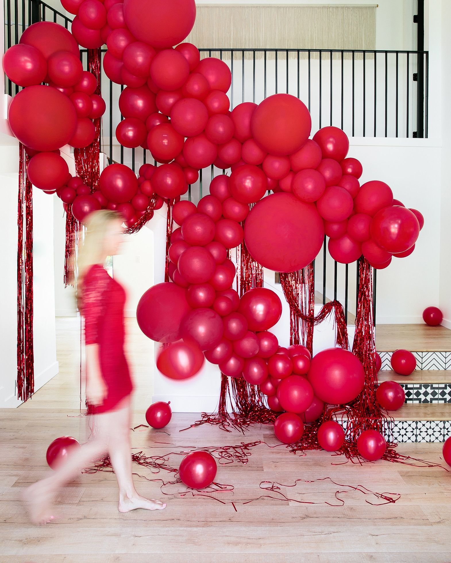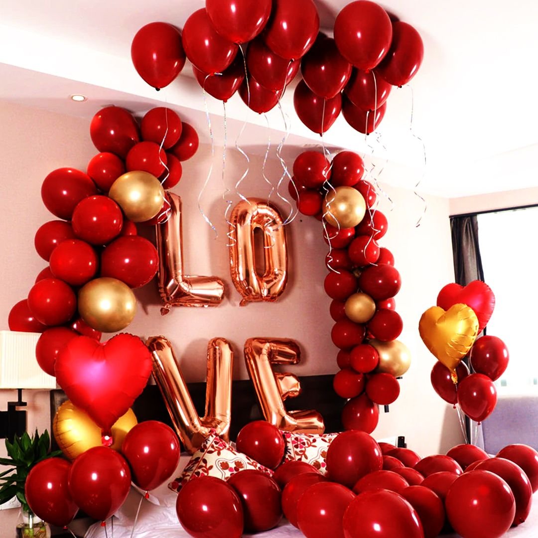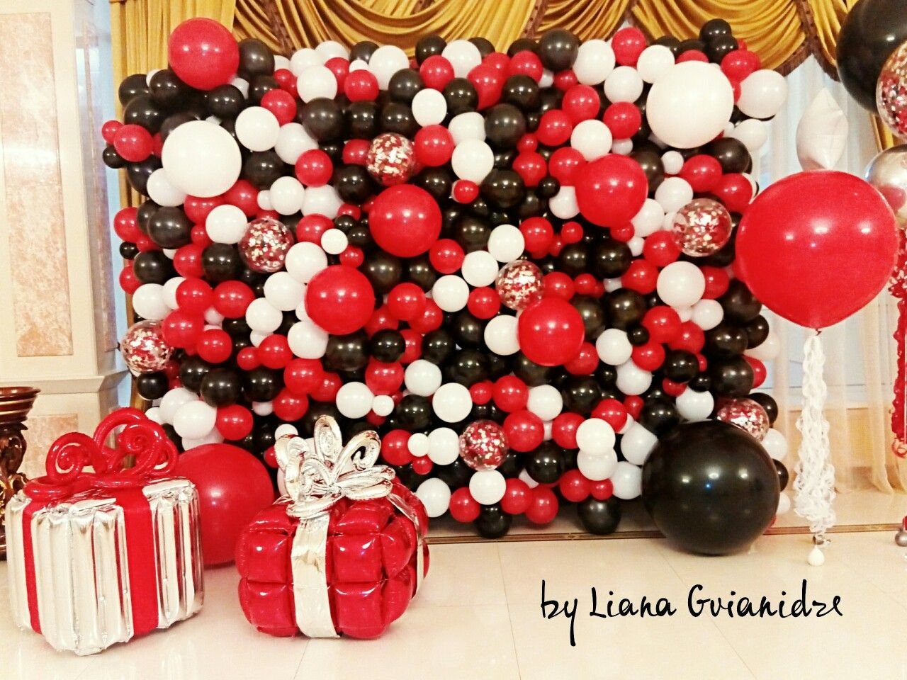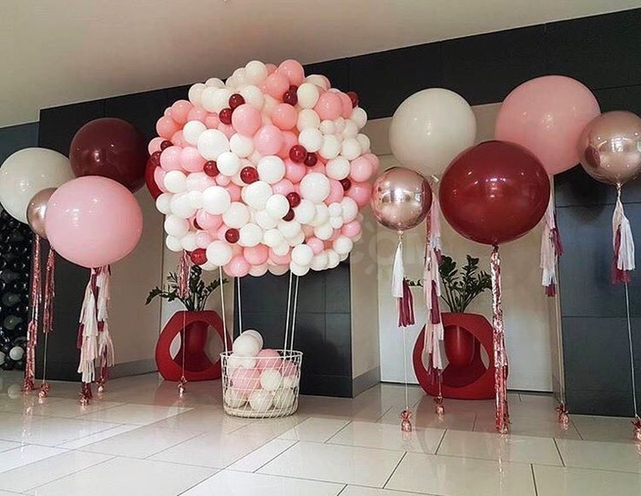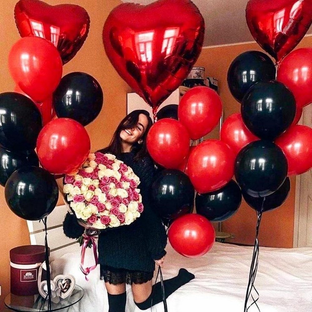 Украсить комнату шарами черный с красным