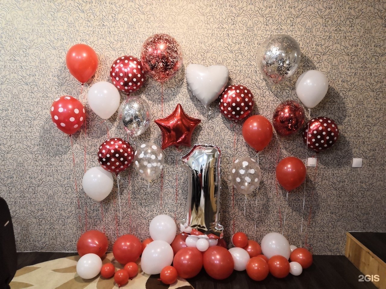Шары красный белый серебро