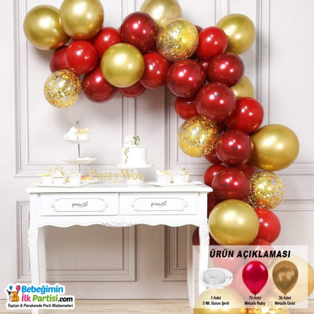 Гирлянда золото красный белый из шаров