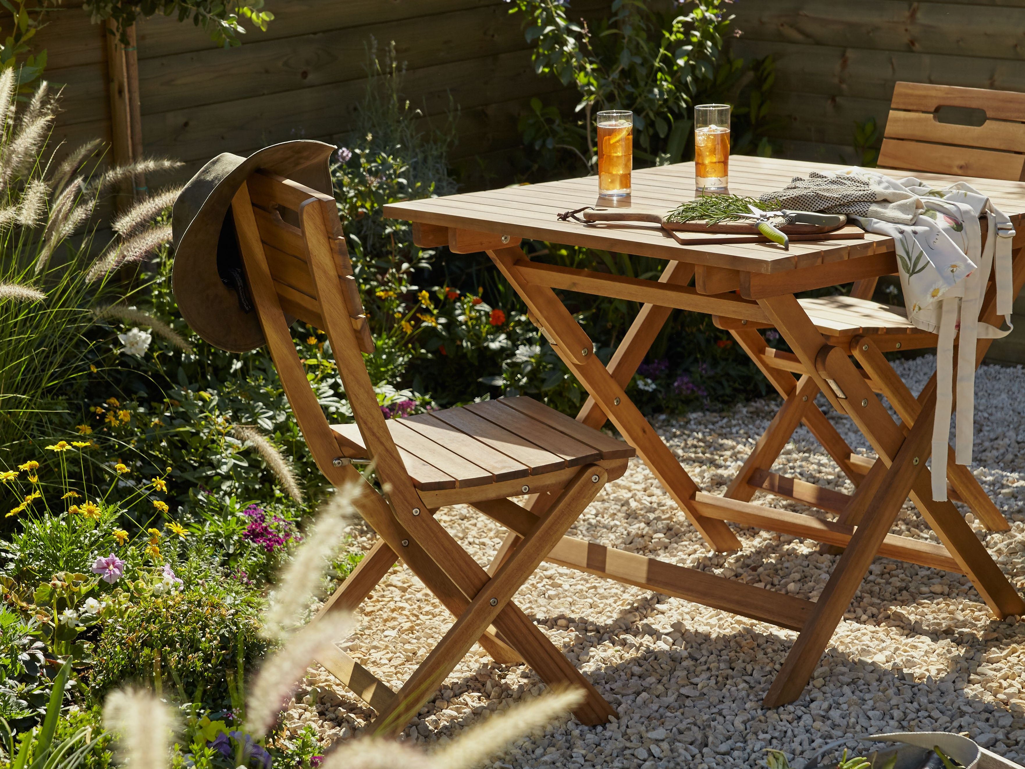 Комплект садовой мебели(стол складной + 2 стула), дерево дуб