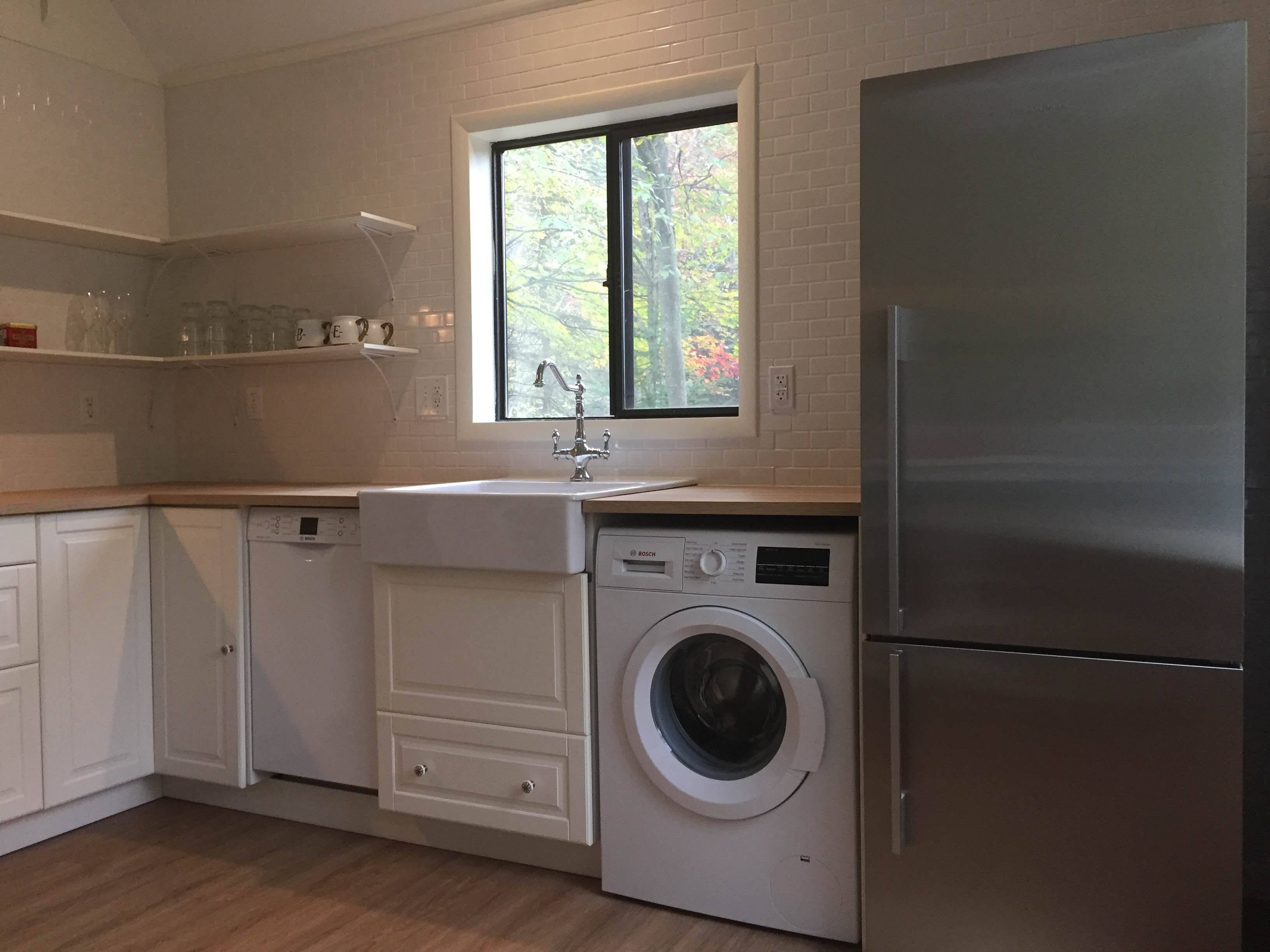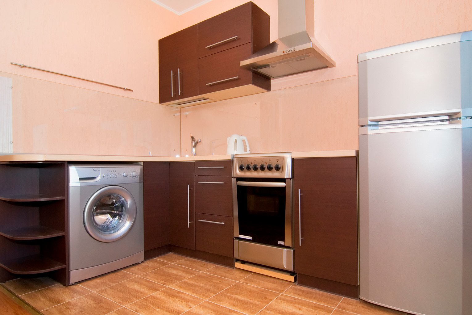 Кухня со стиральной машиной и холодильником