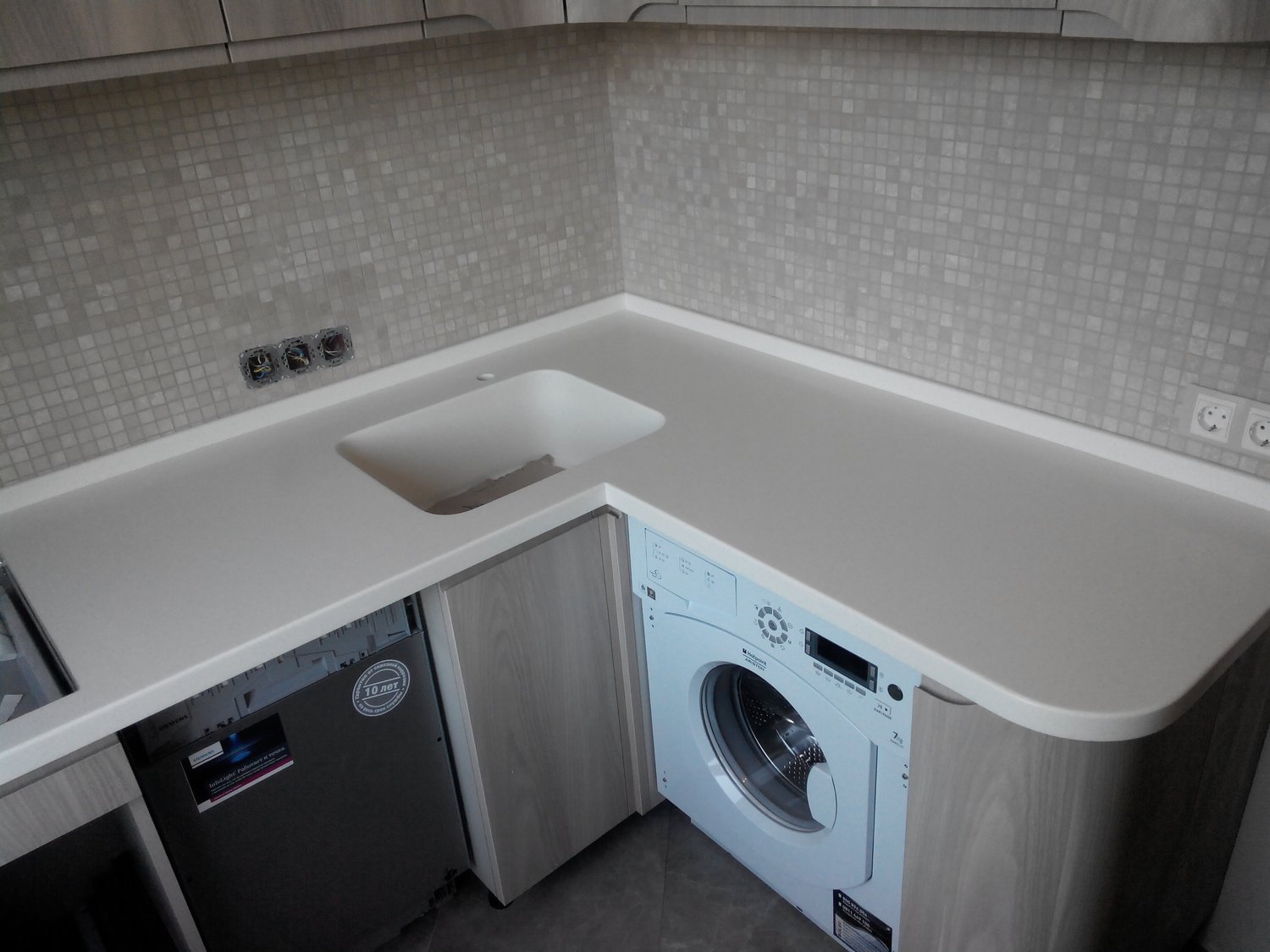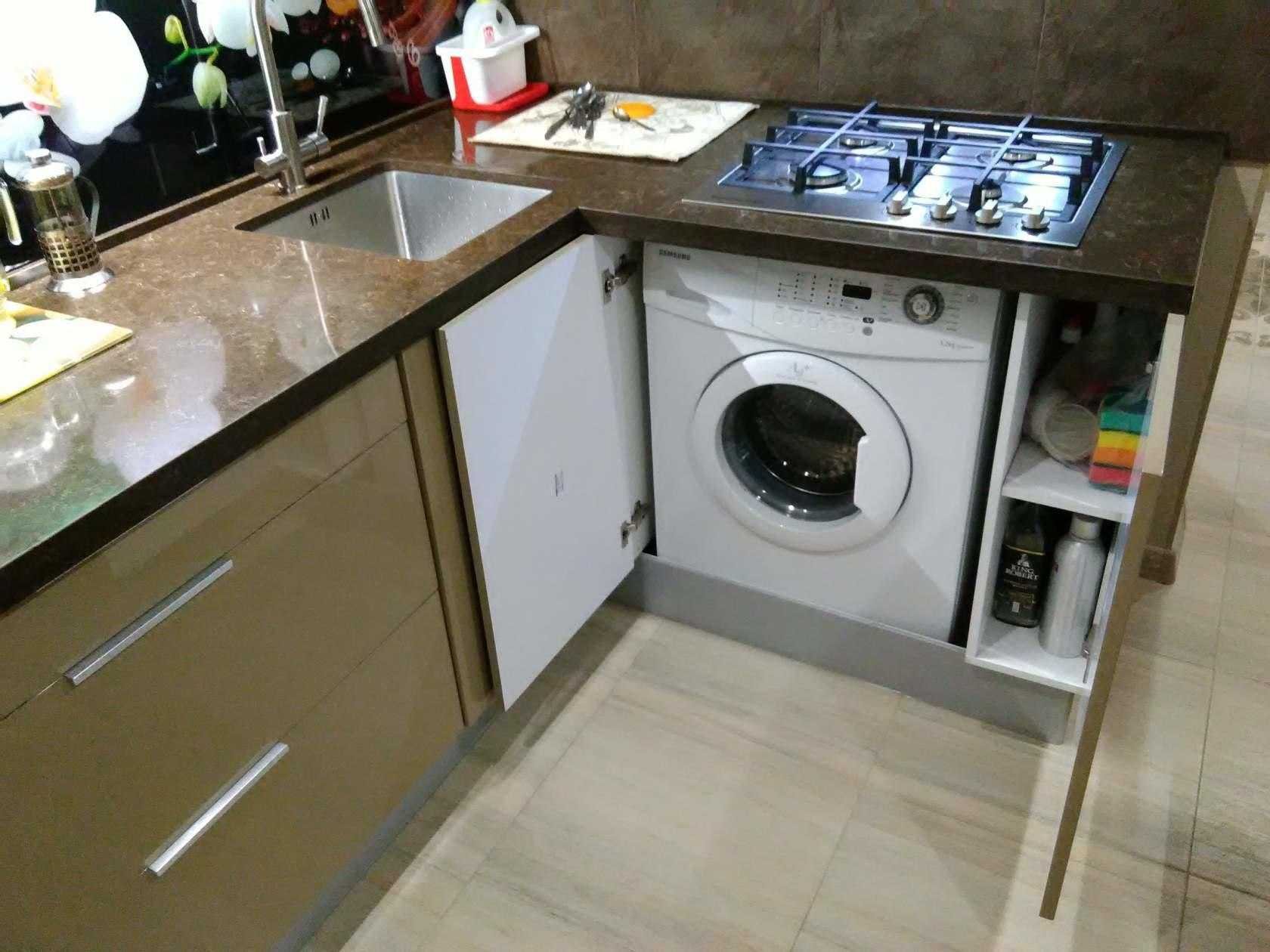 Стиральная машинка на кухне под столешницей