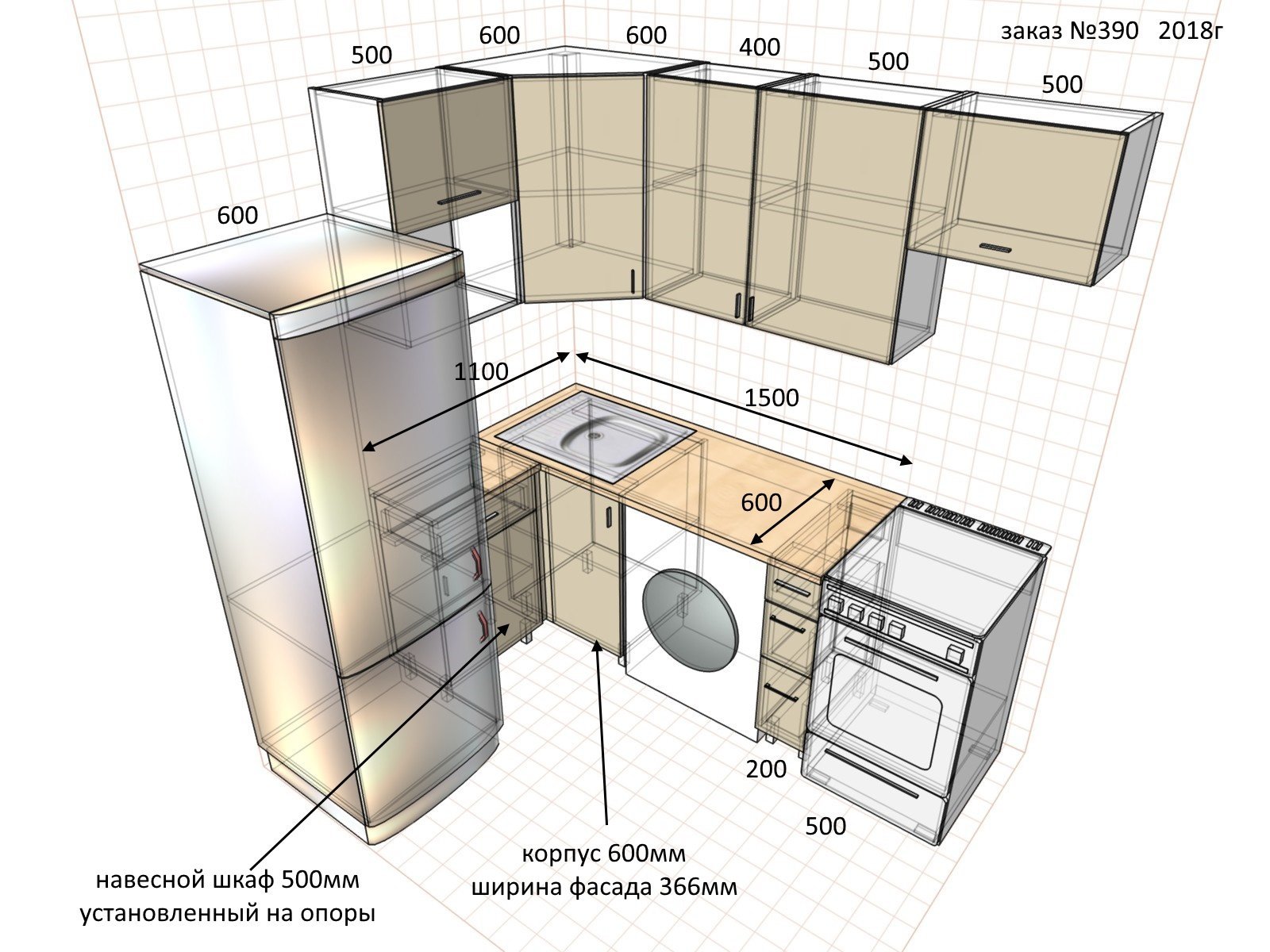 Угловая кухня со стиральной машиной