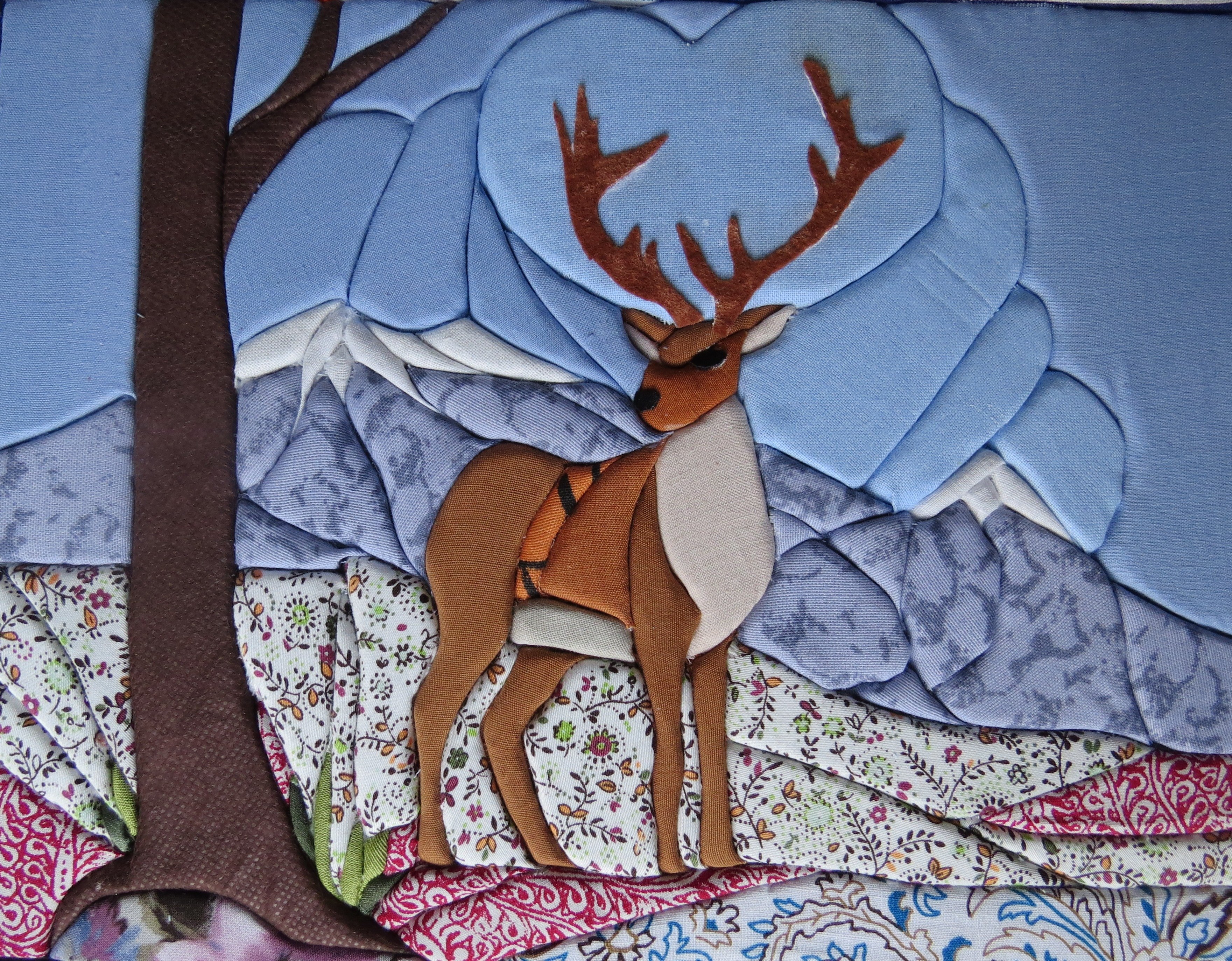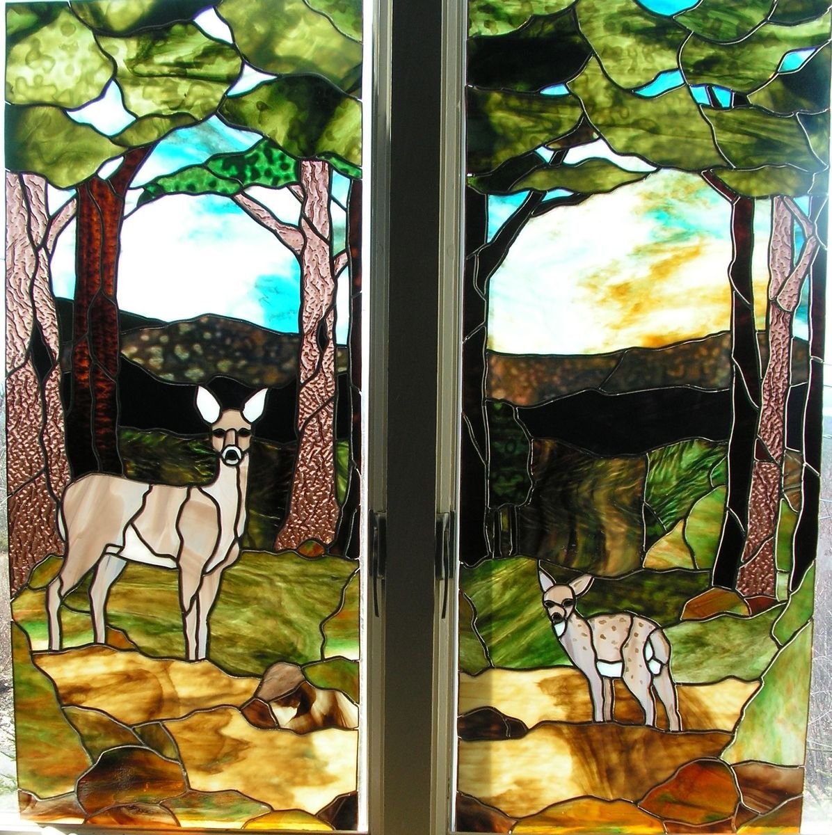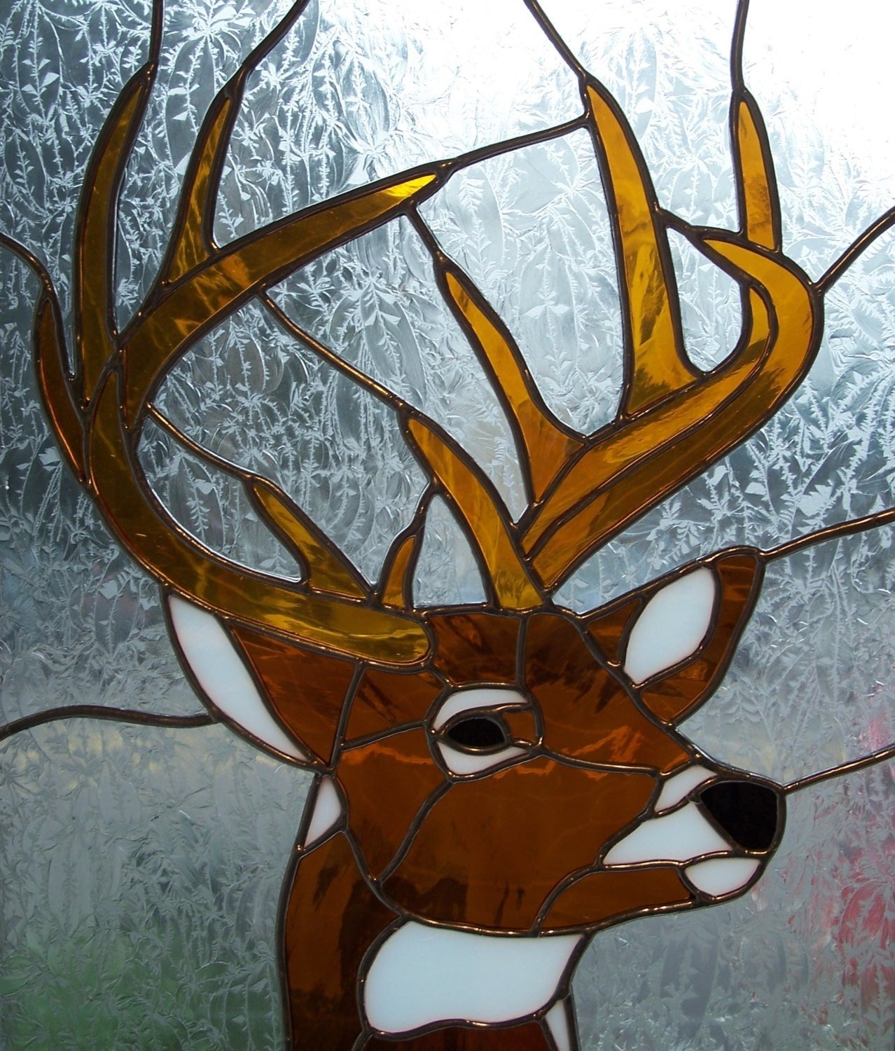 Витраж разноцветных стекол с оленем