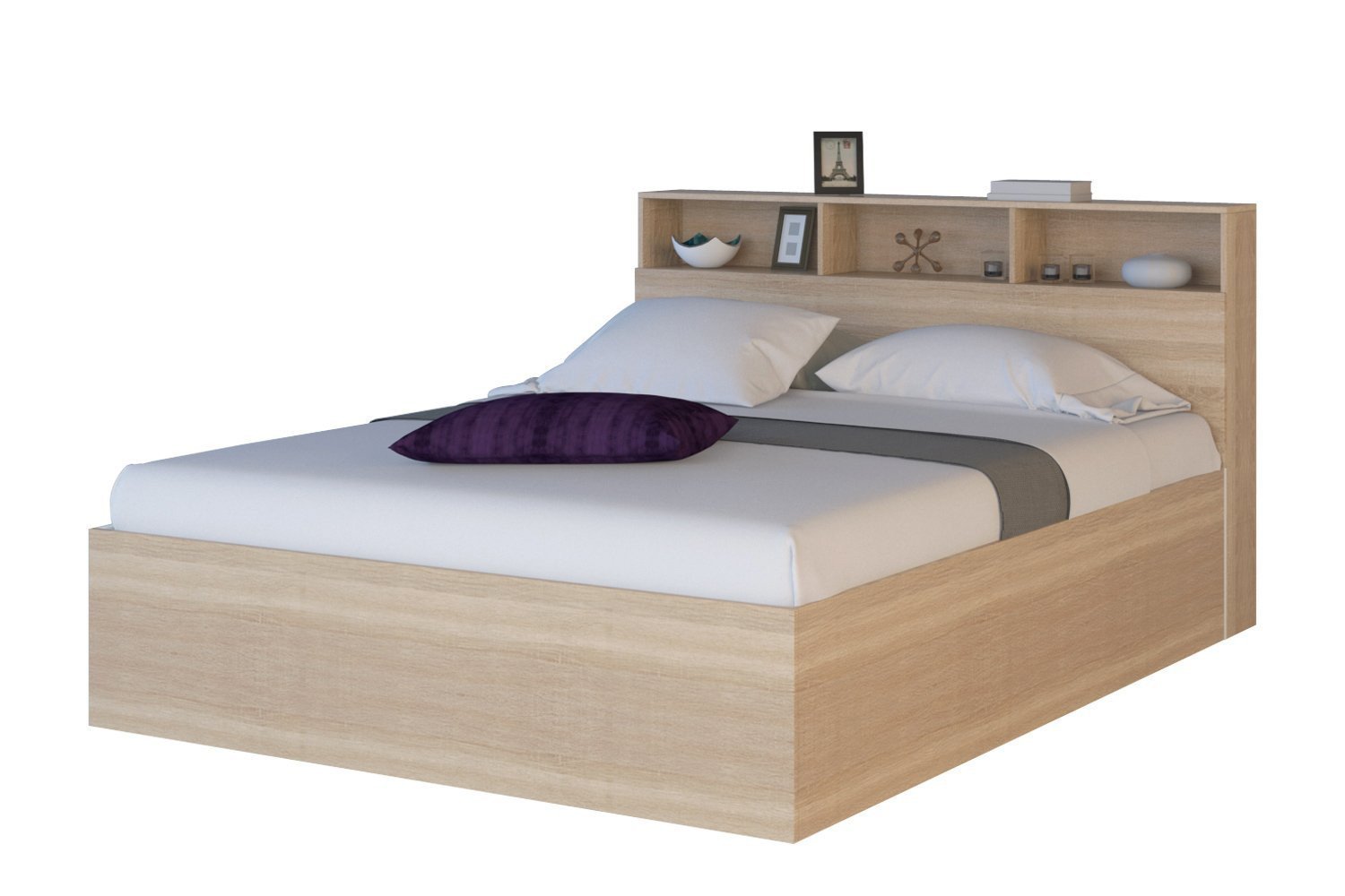 Кровать двуспальная с полками в изголовье
