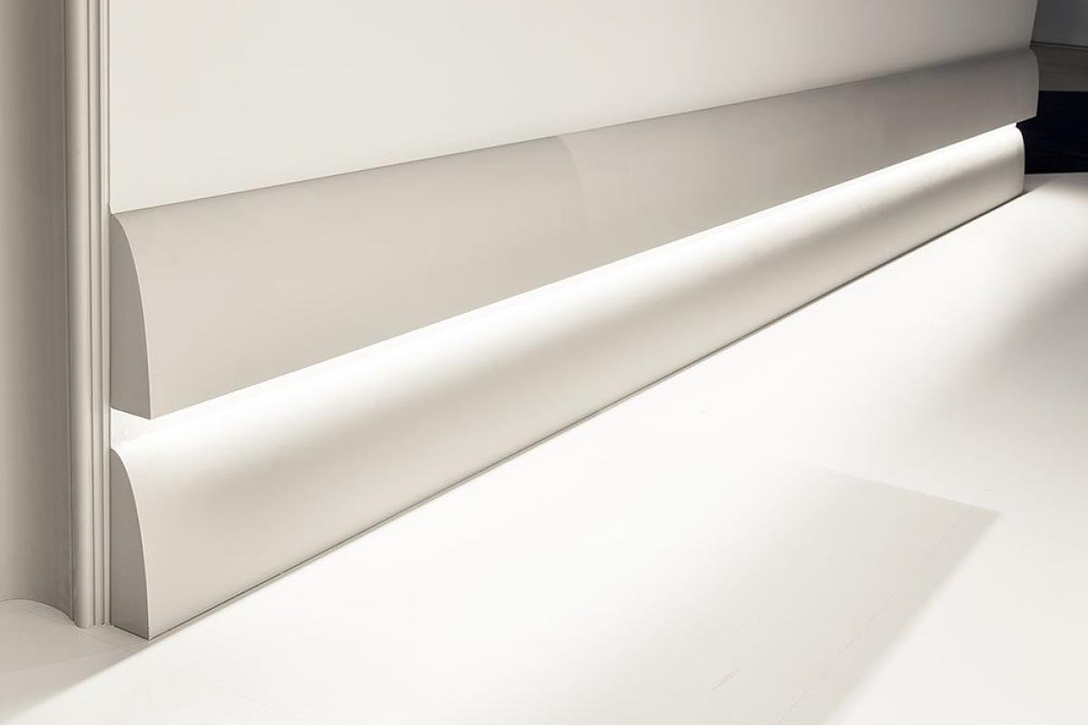 Плинтус белый из МДФ Evrowood (Евровуд) PN 101 led 2000x100x16 для подсветки