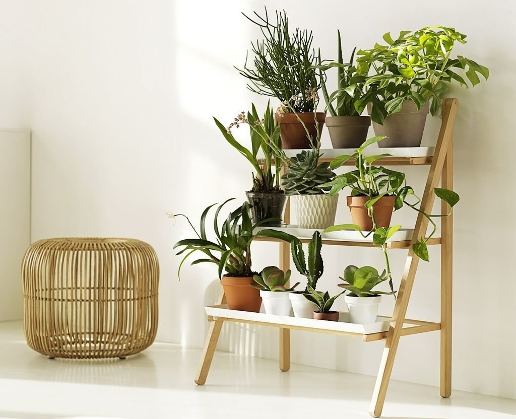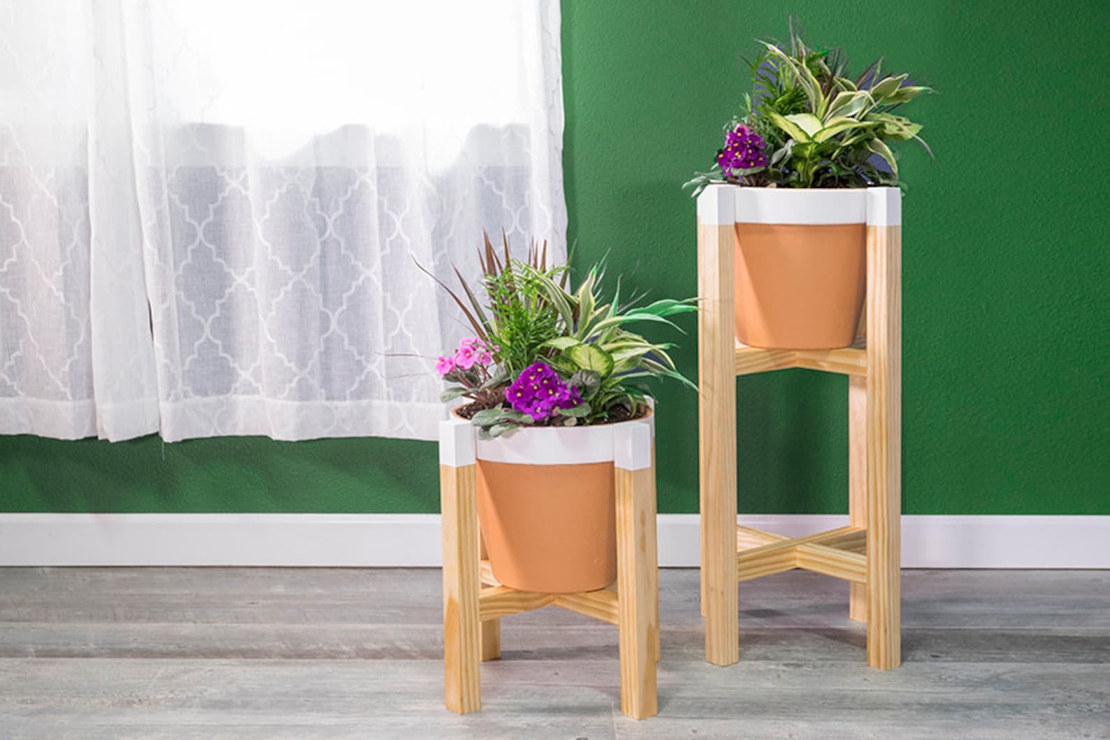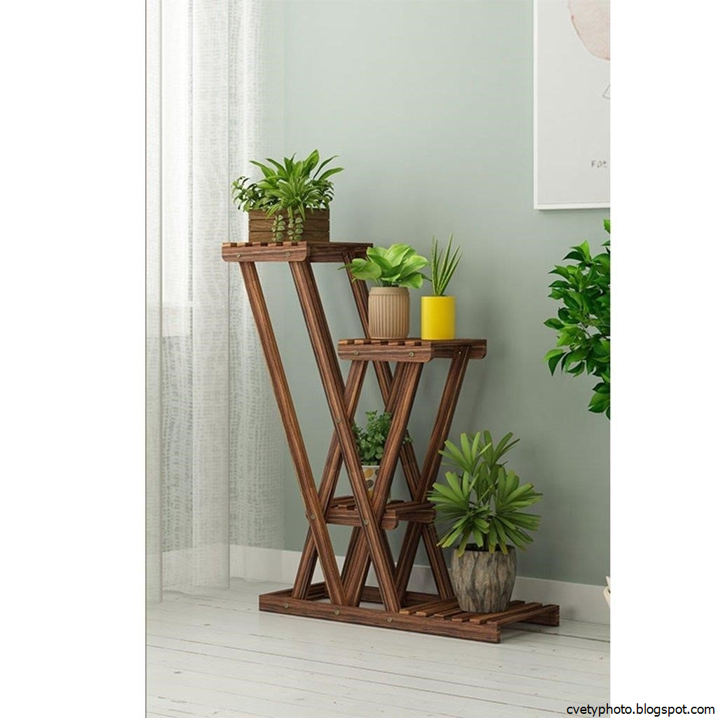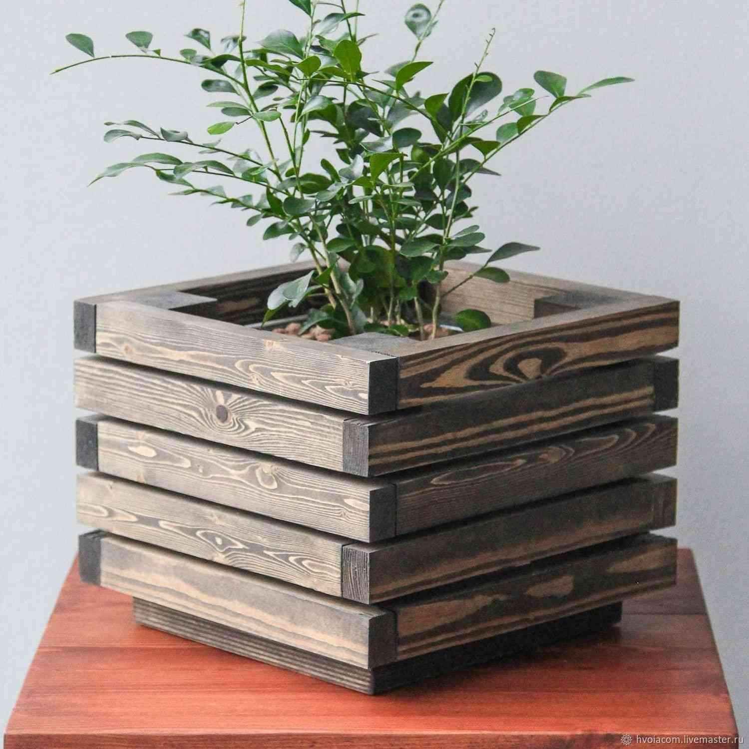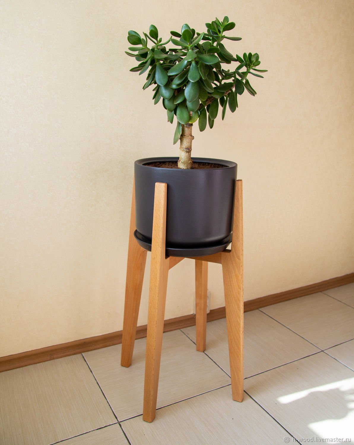 Подставка для цветов напольная деревянная в скандинавском стиле