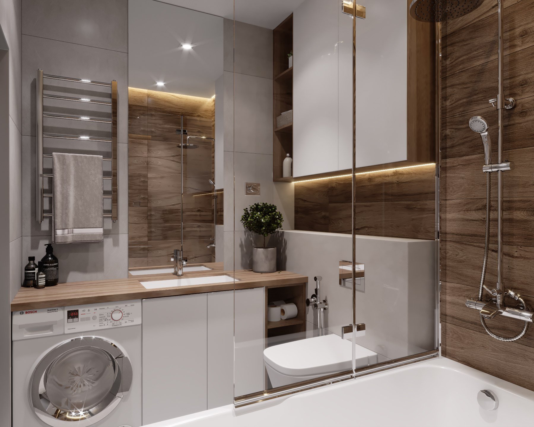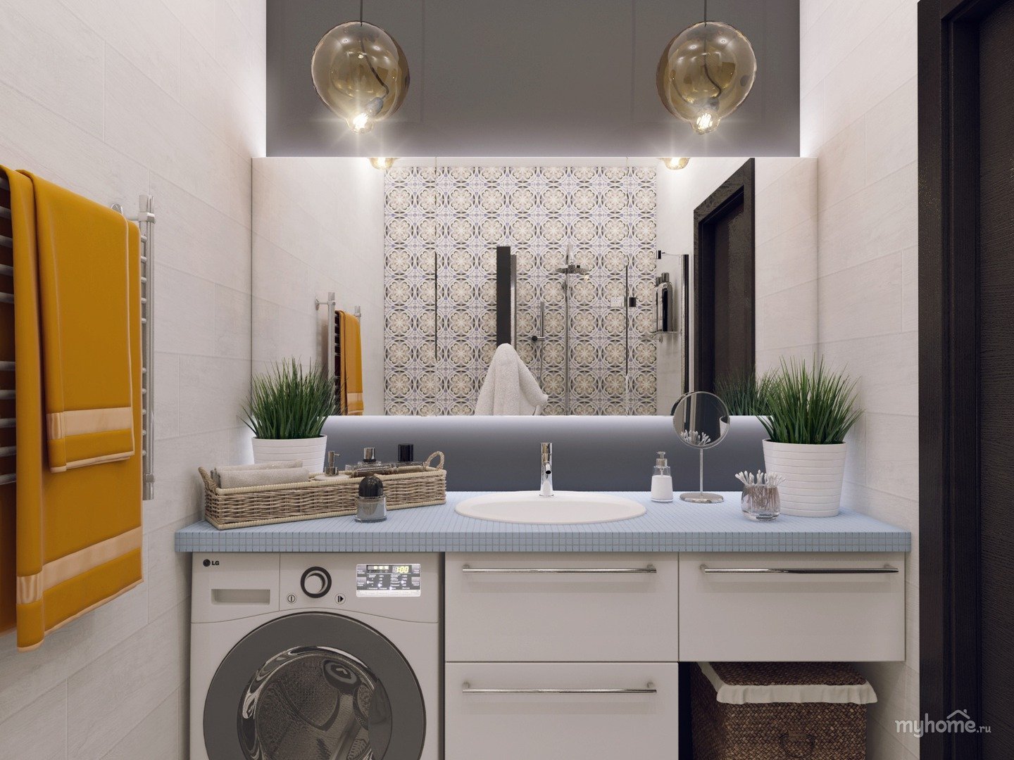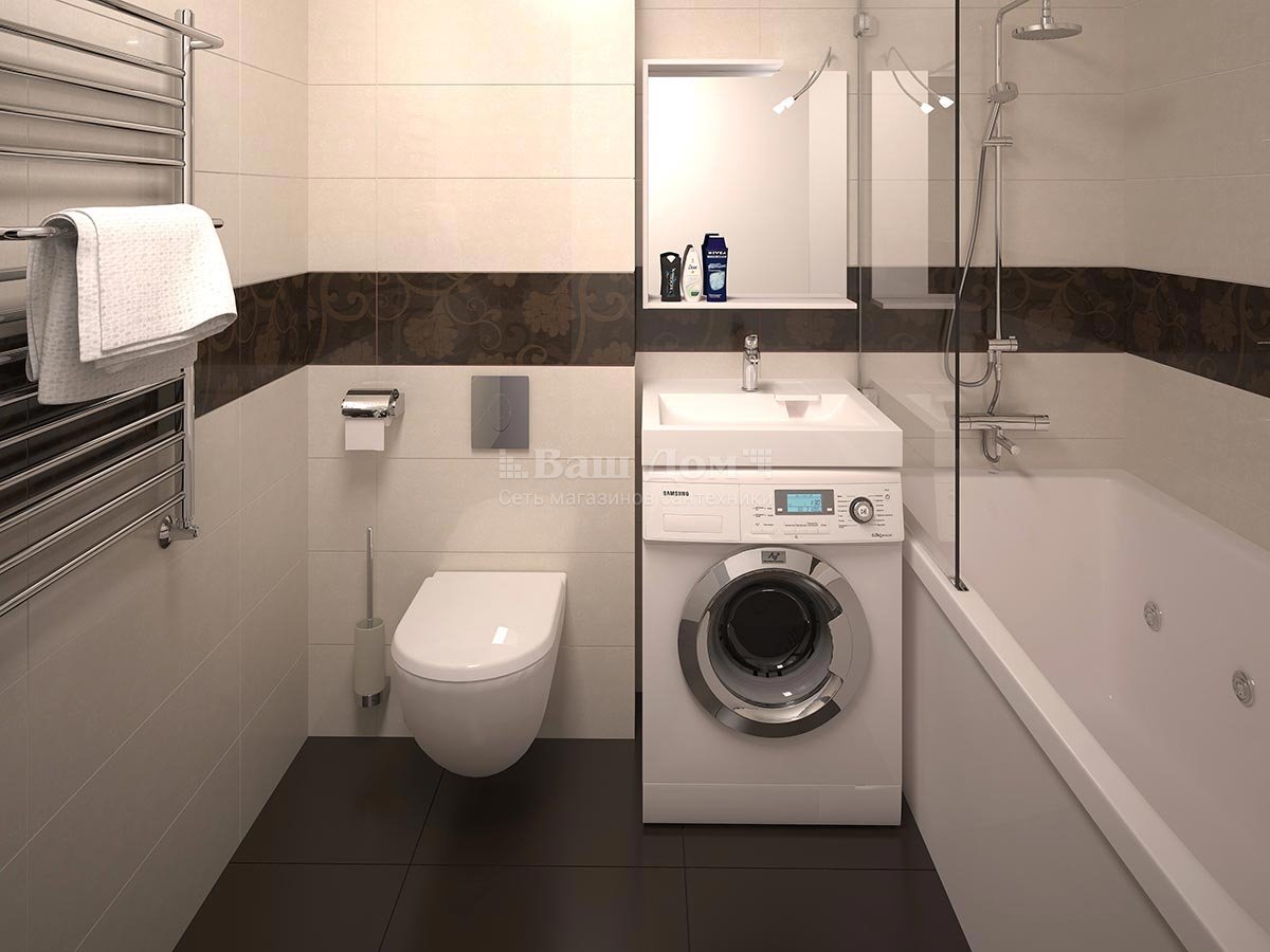 Ванная комната 4 кв.м с туалетом с стиральной машиной