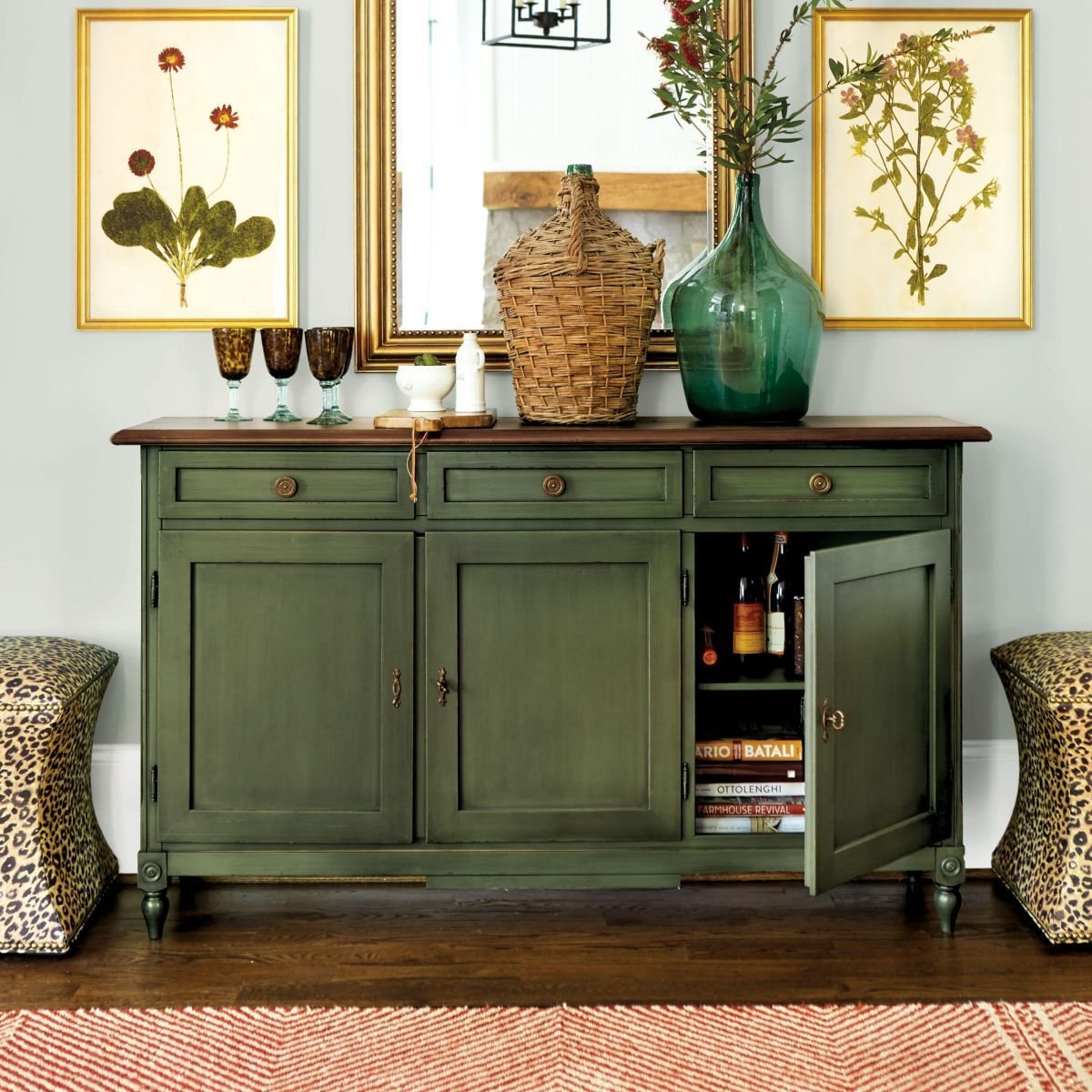 Буфет зеленого цвета в интерьере