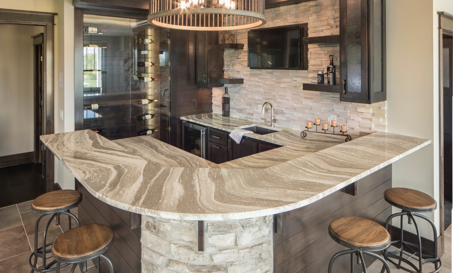Барная стойка отделанная камнем