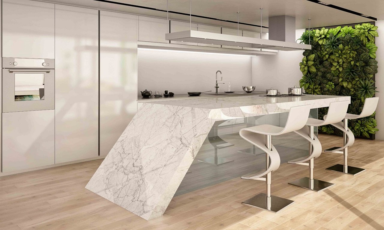 Мрамор Бьянко Каррара в интерьере