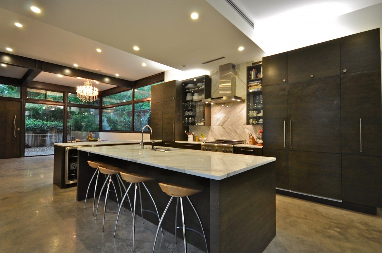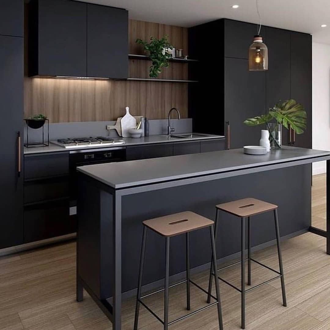 Кухня без верхних шкафов с островом