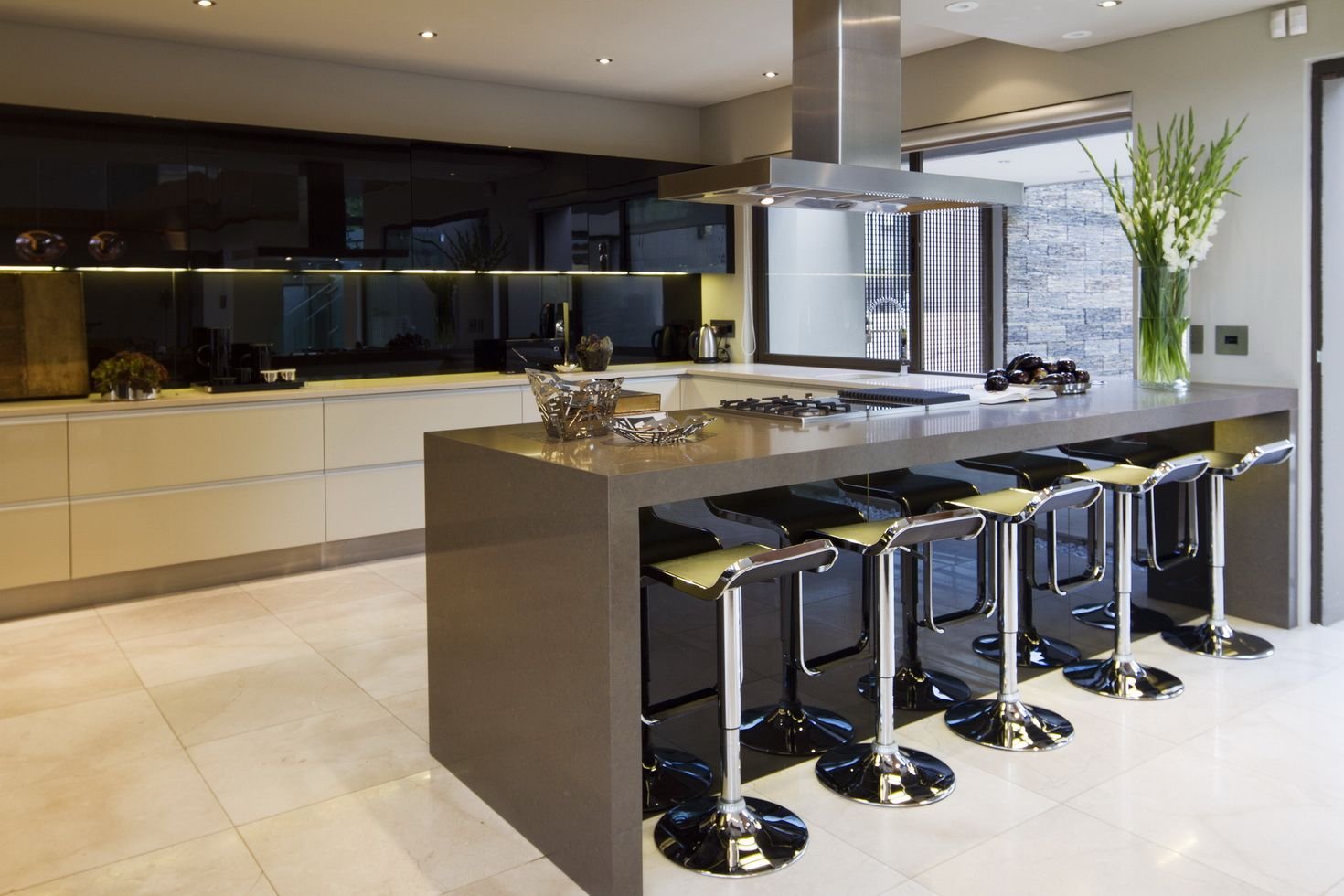 Кухонный остров с барными стульями