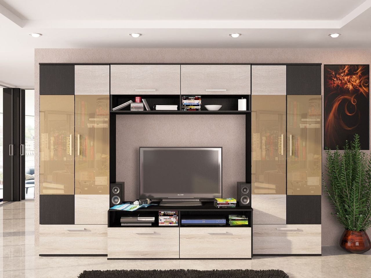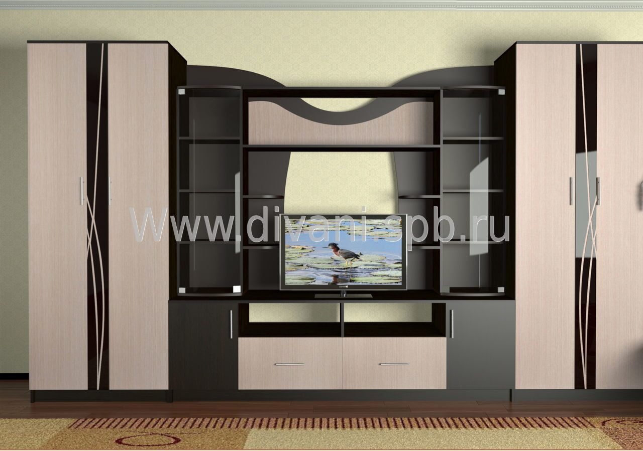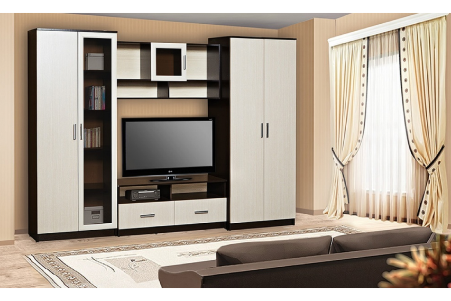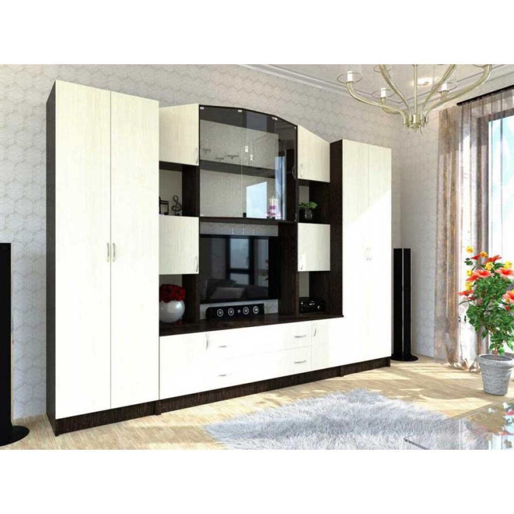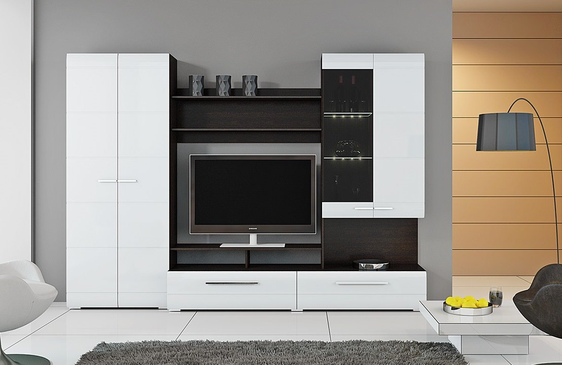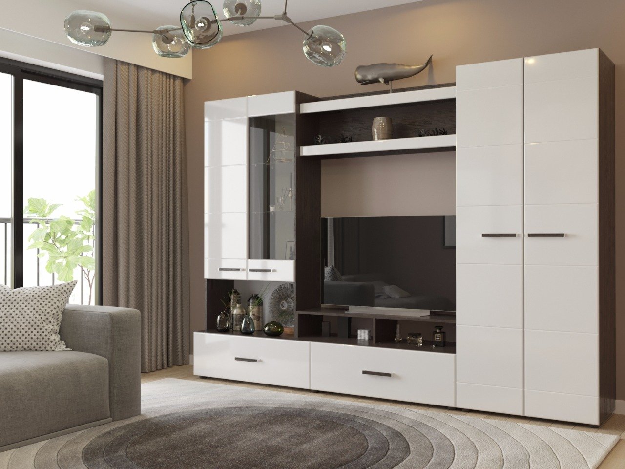 Стенка для гостиной ТРИЯ Вега ТД-196.01 венге линум, белый глянец