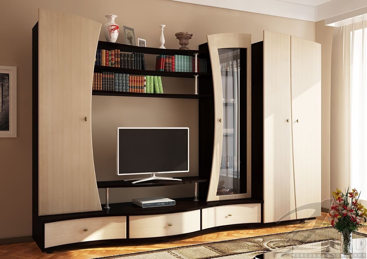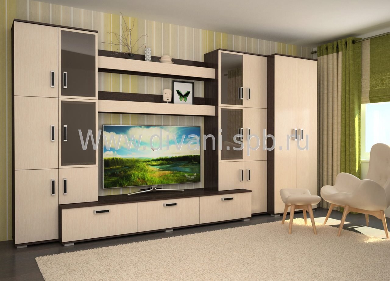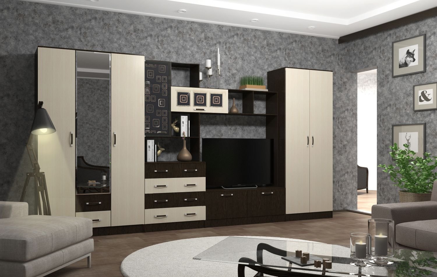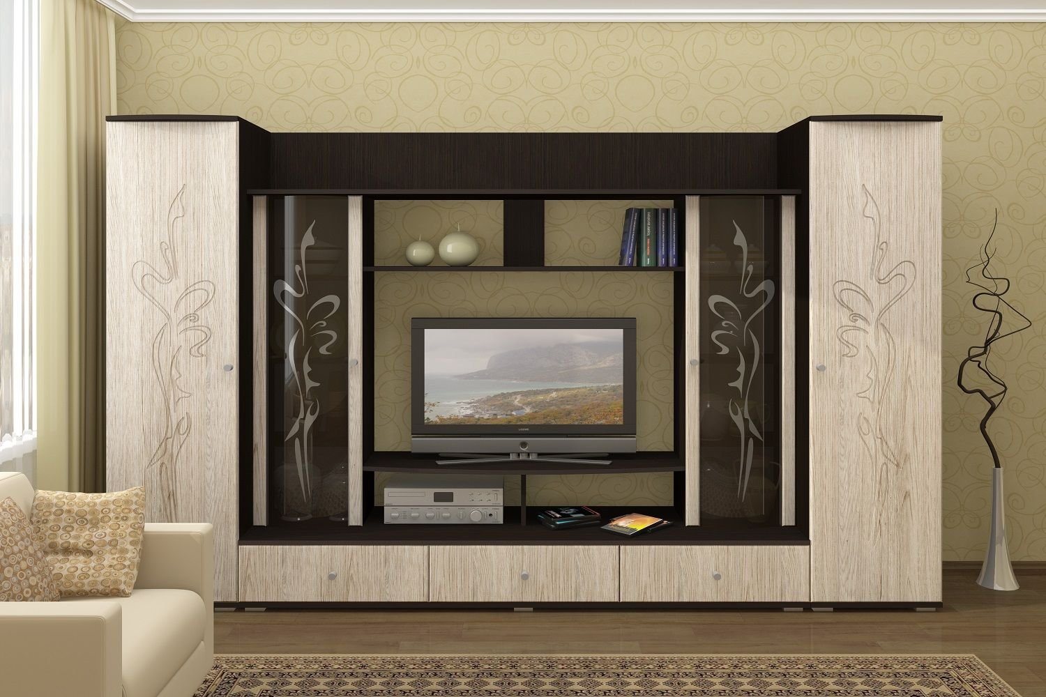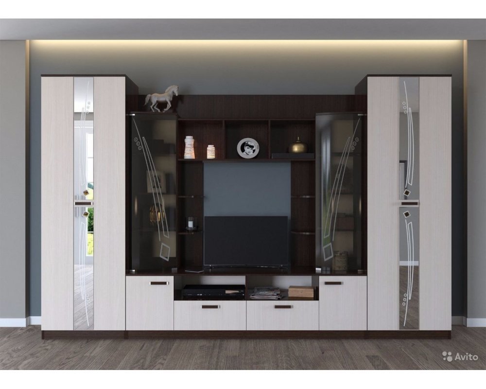 Стенка для гостиной ТРИЯ Вега ТД-196.01 венге линум, белый глянец