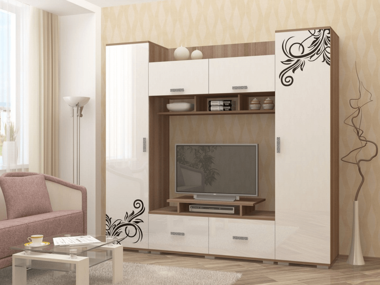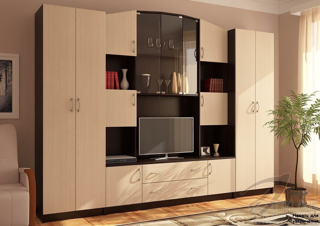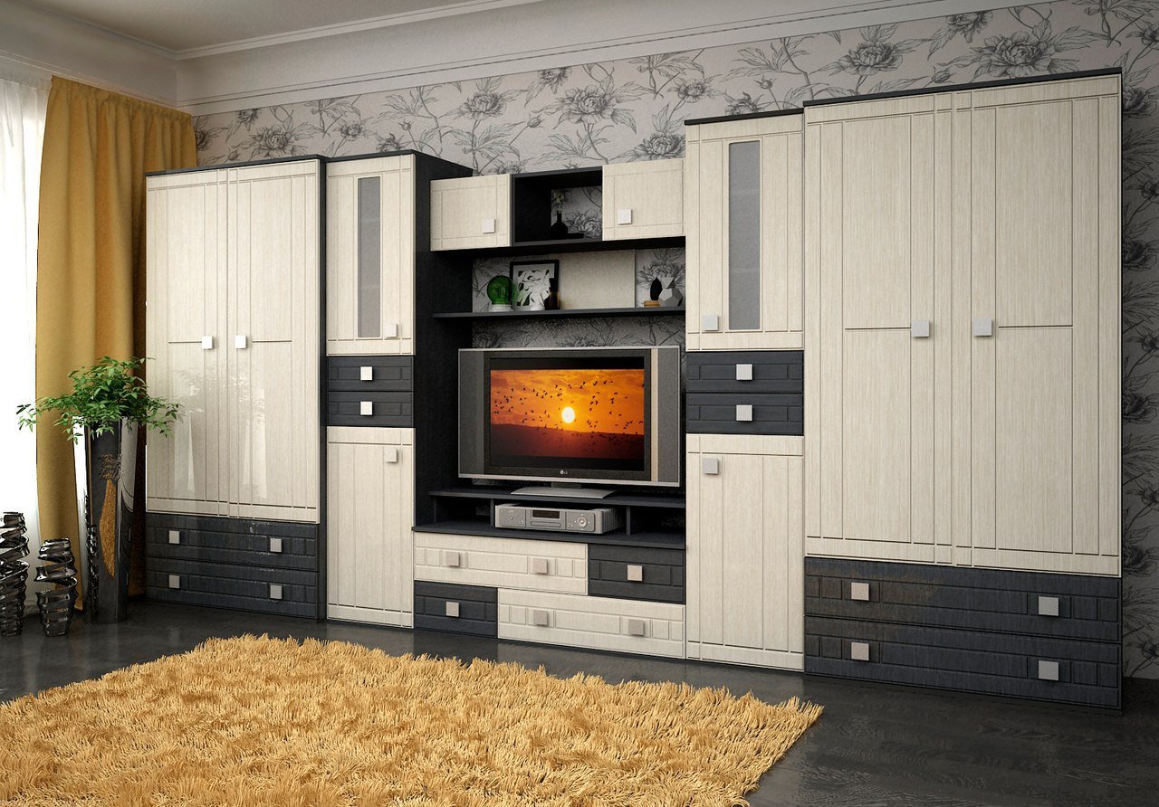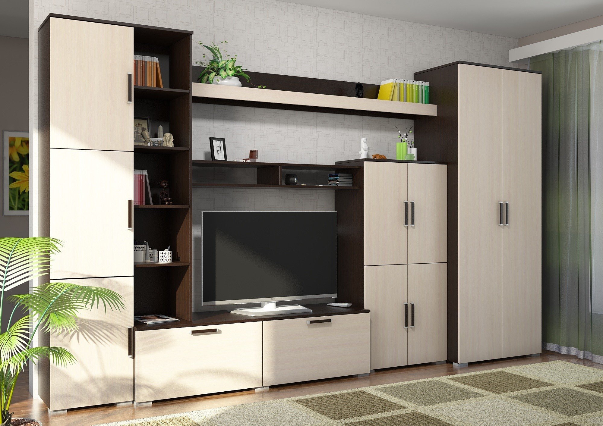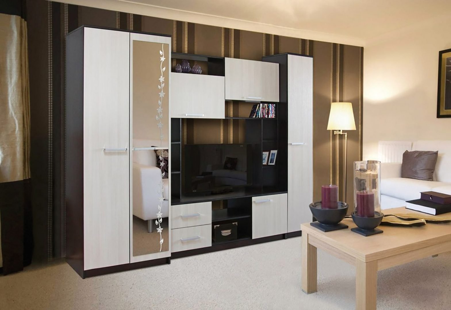 Стенка для гостиной ТРИЯ Вега ТД-196.01 венге линум, белый глянец