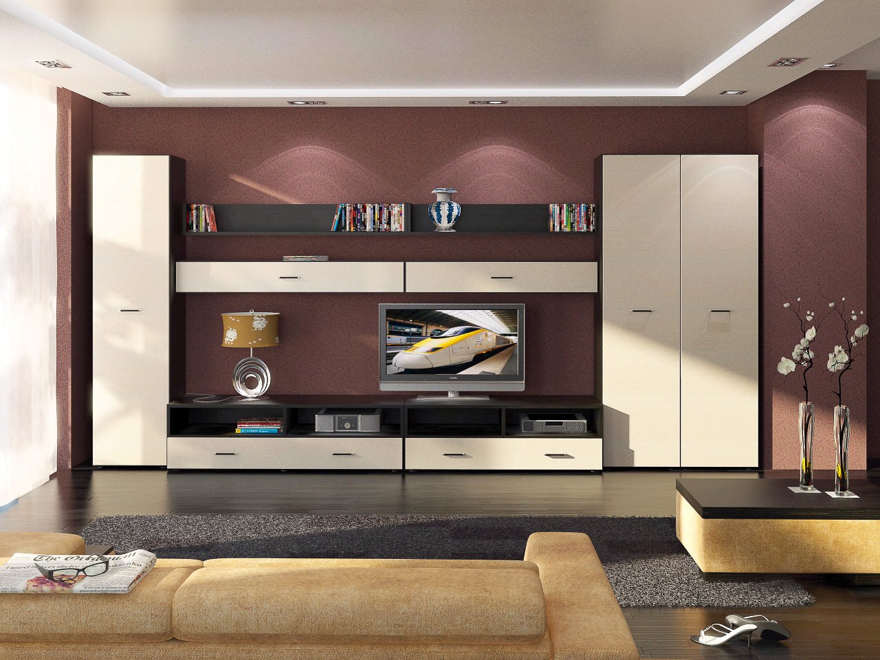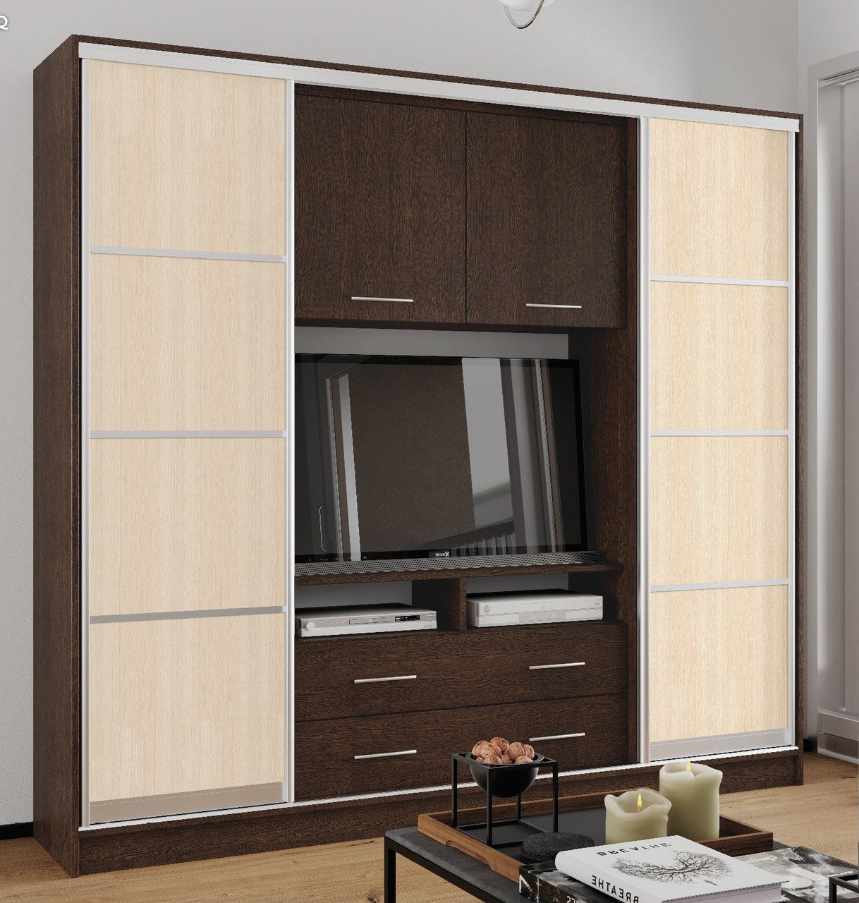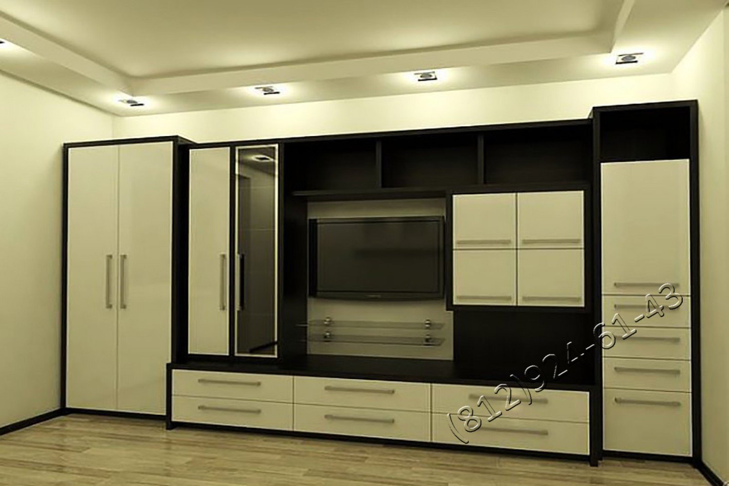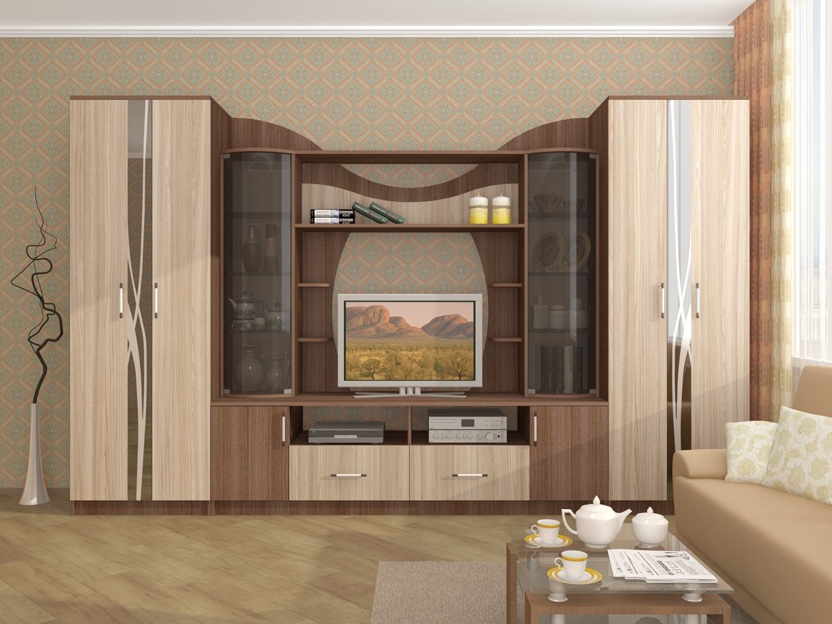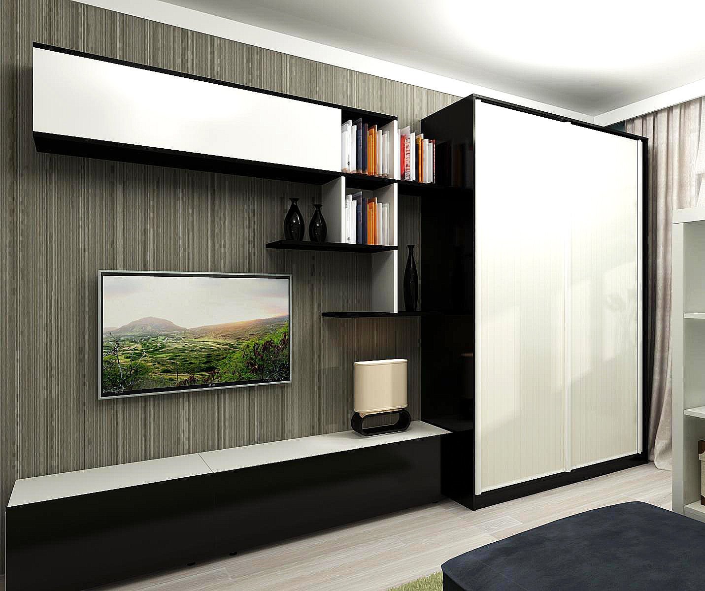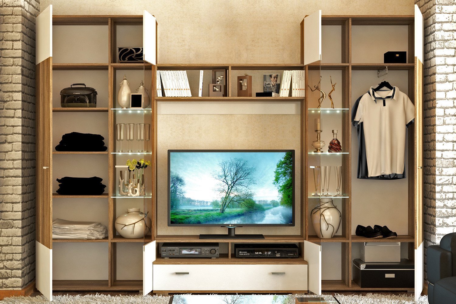Стенка для гостиной ТРИЯ Вега ТД-196.01 венге линум, белый глянец