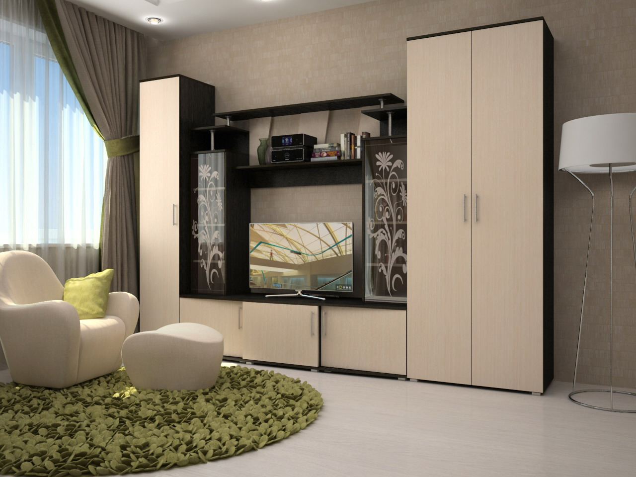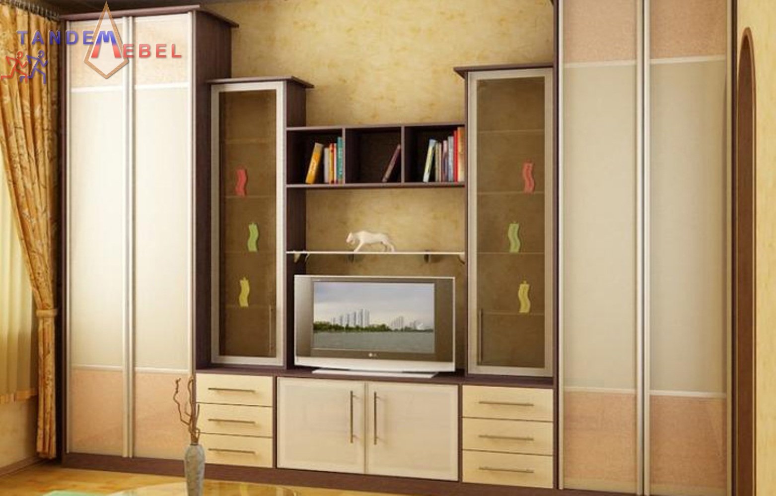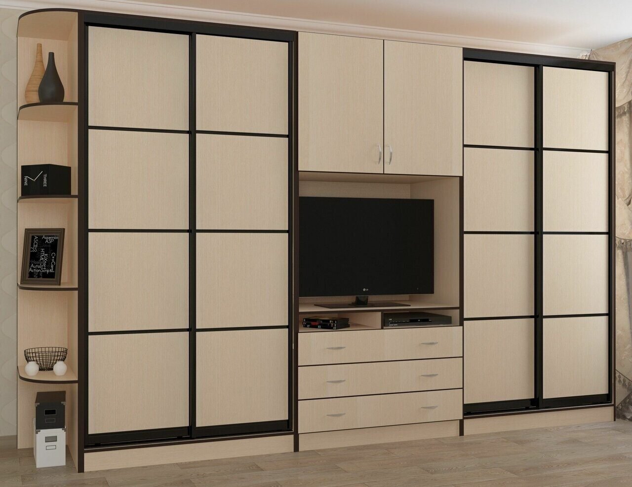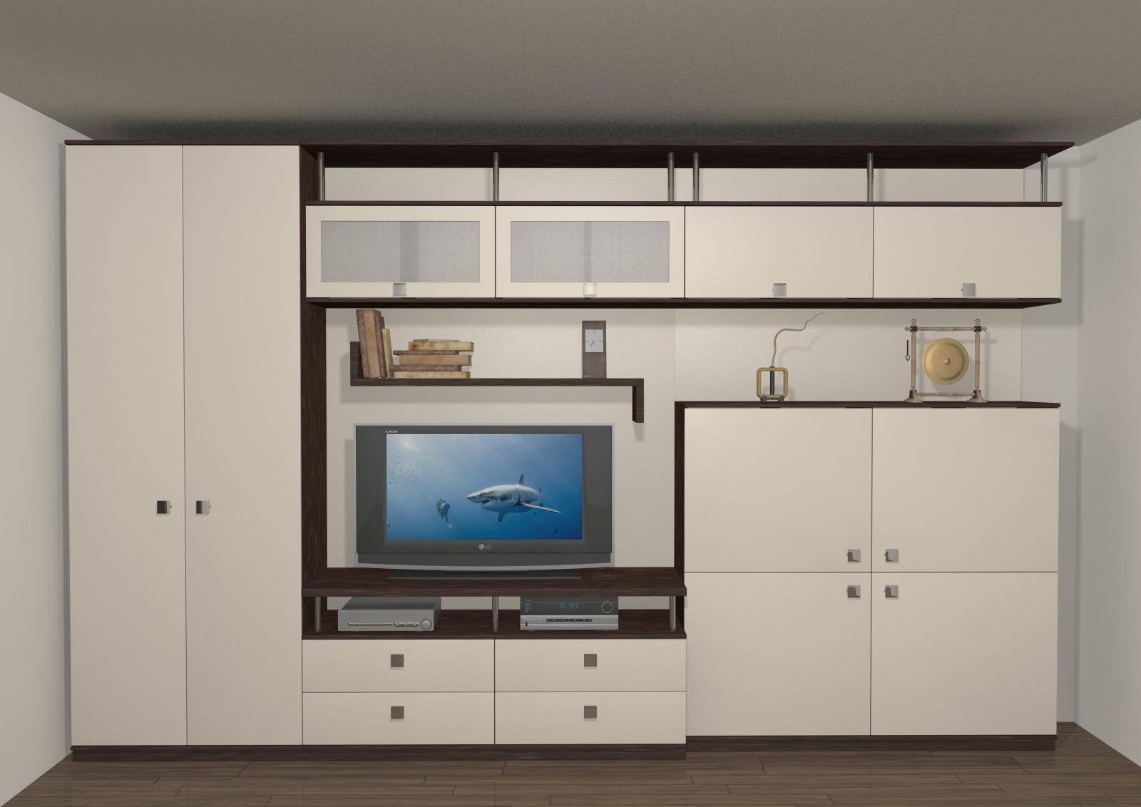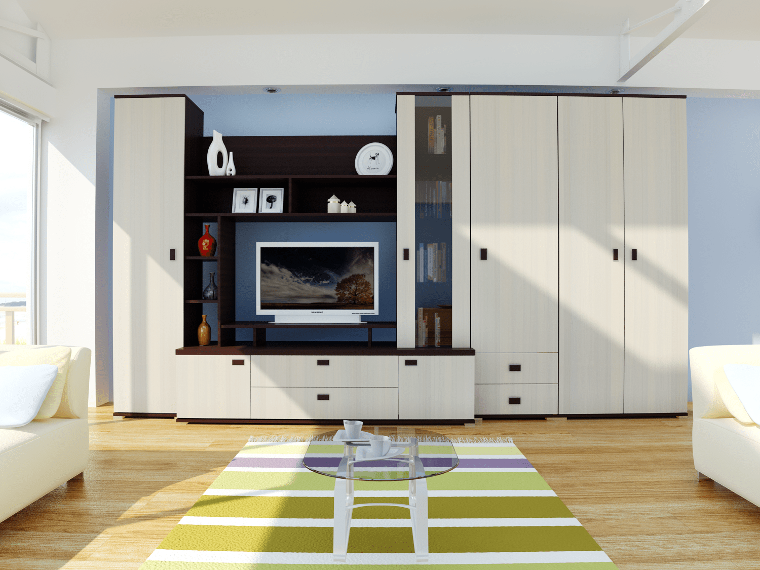 Стенка для гостиной ТРИЯ Вега ТД-196.01 венге линум, белый глянец