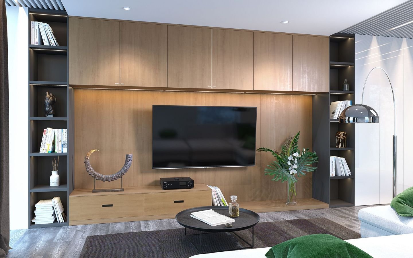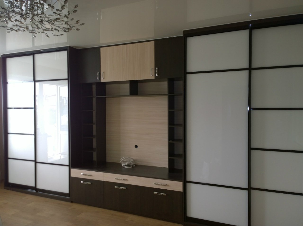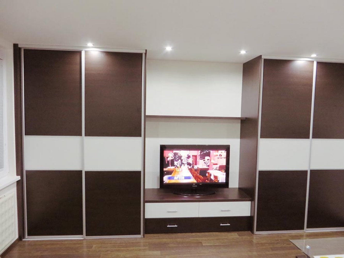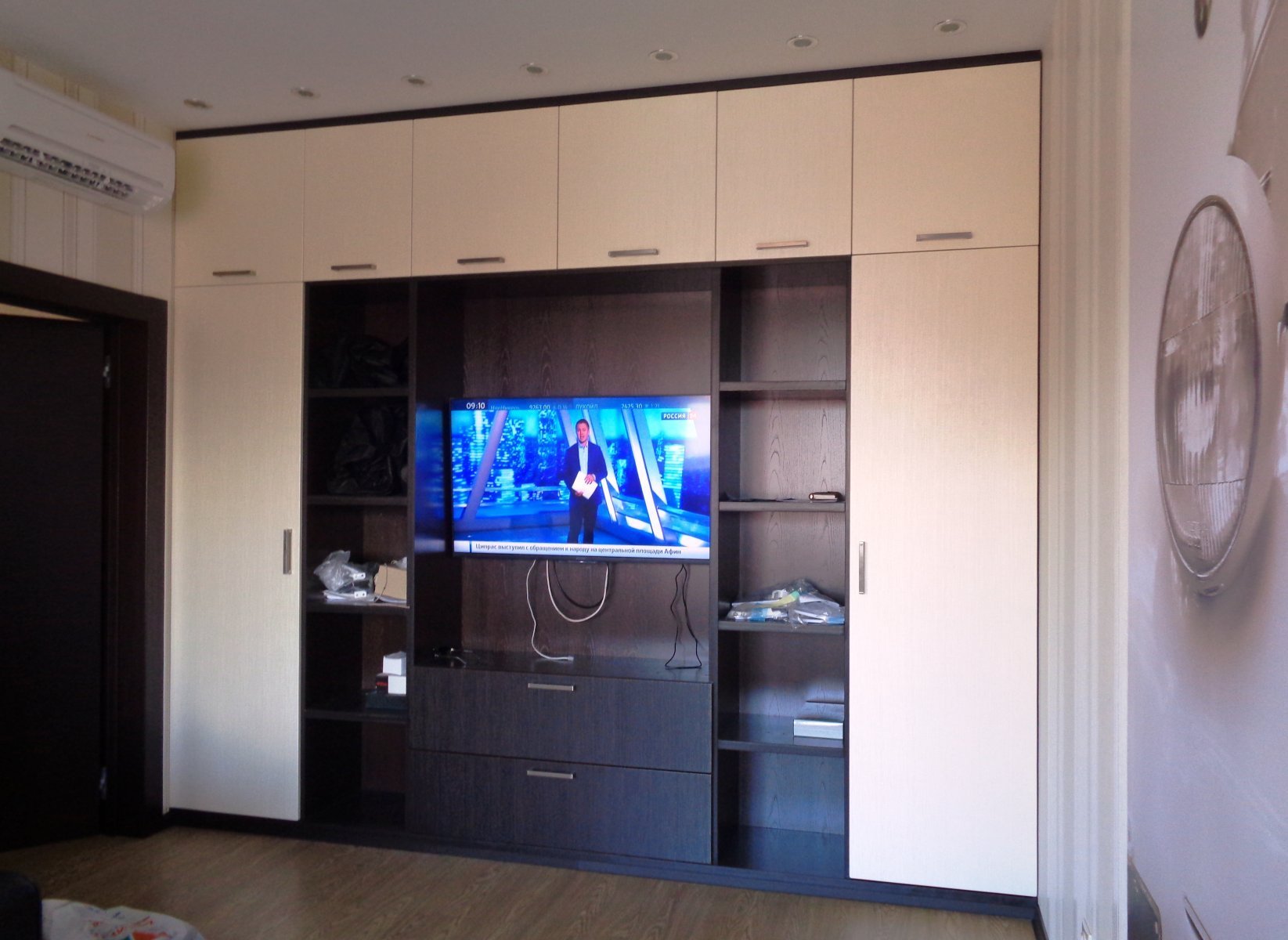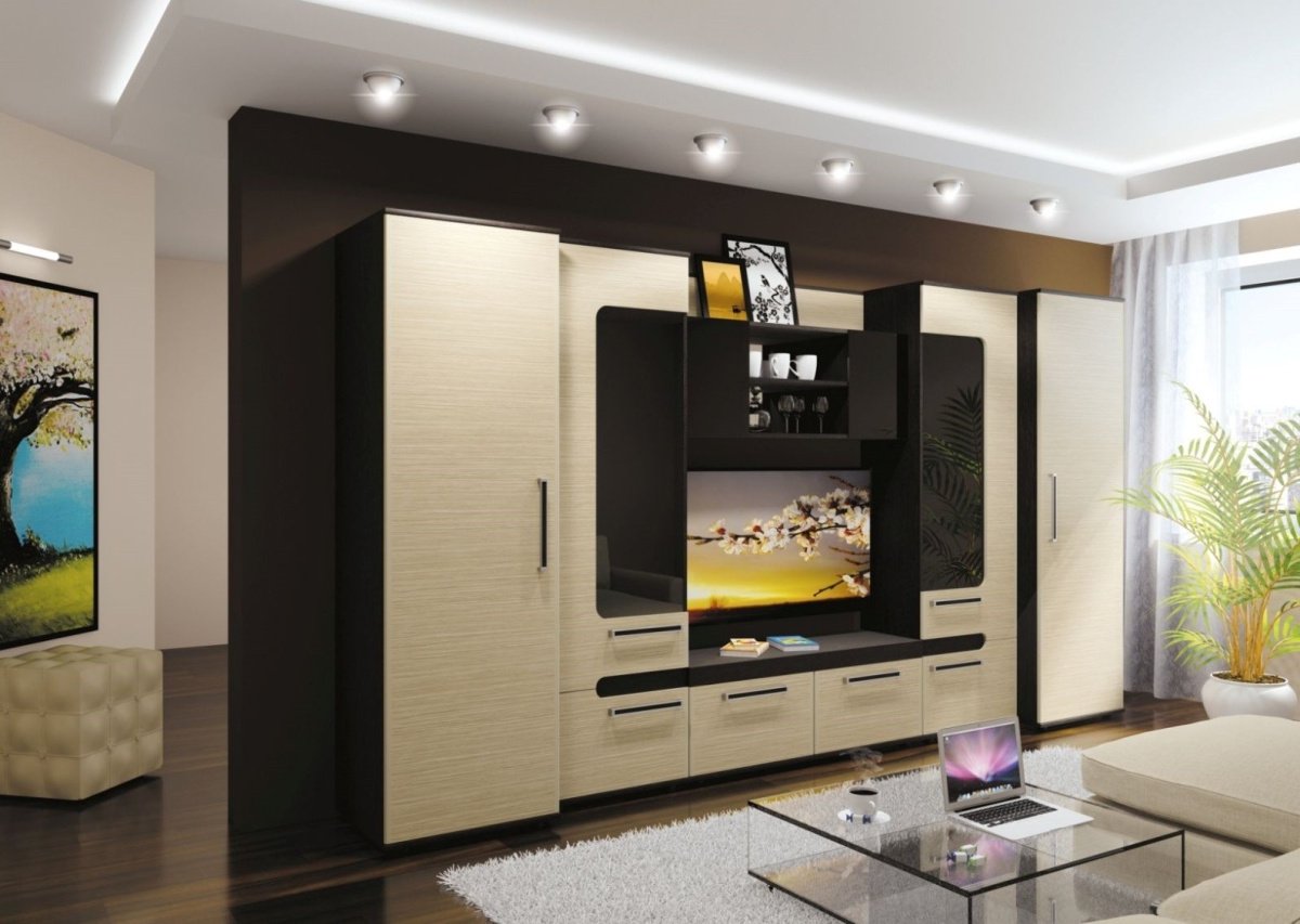 Стенка для гостиной ТРИЯ Вега ТД-196.01 венге линум, белый глянец
