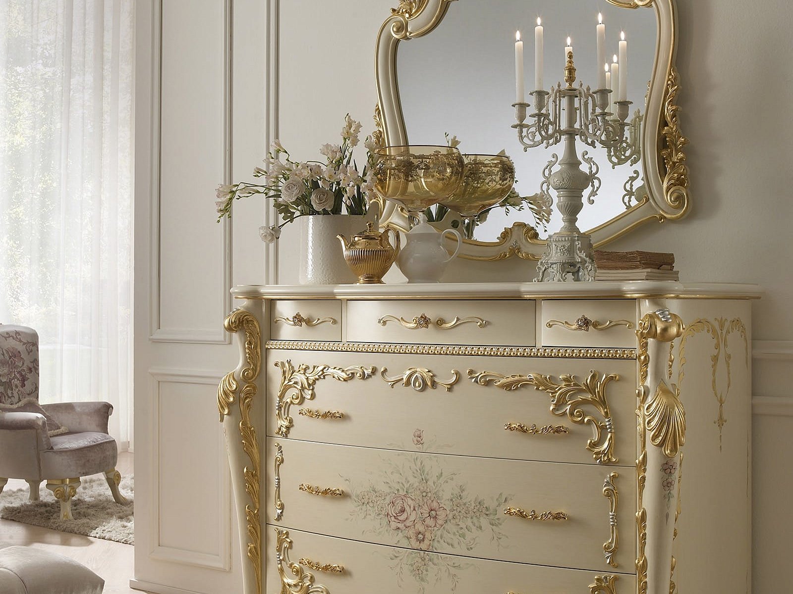 Комоды рококо в стиле Людовика белые с золотом