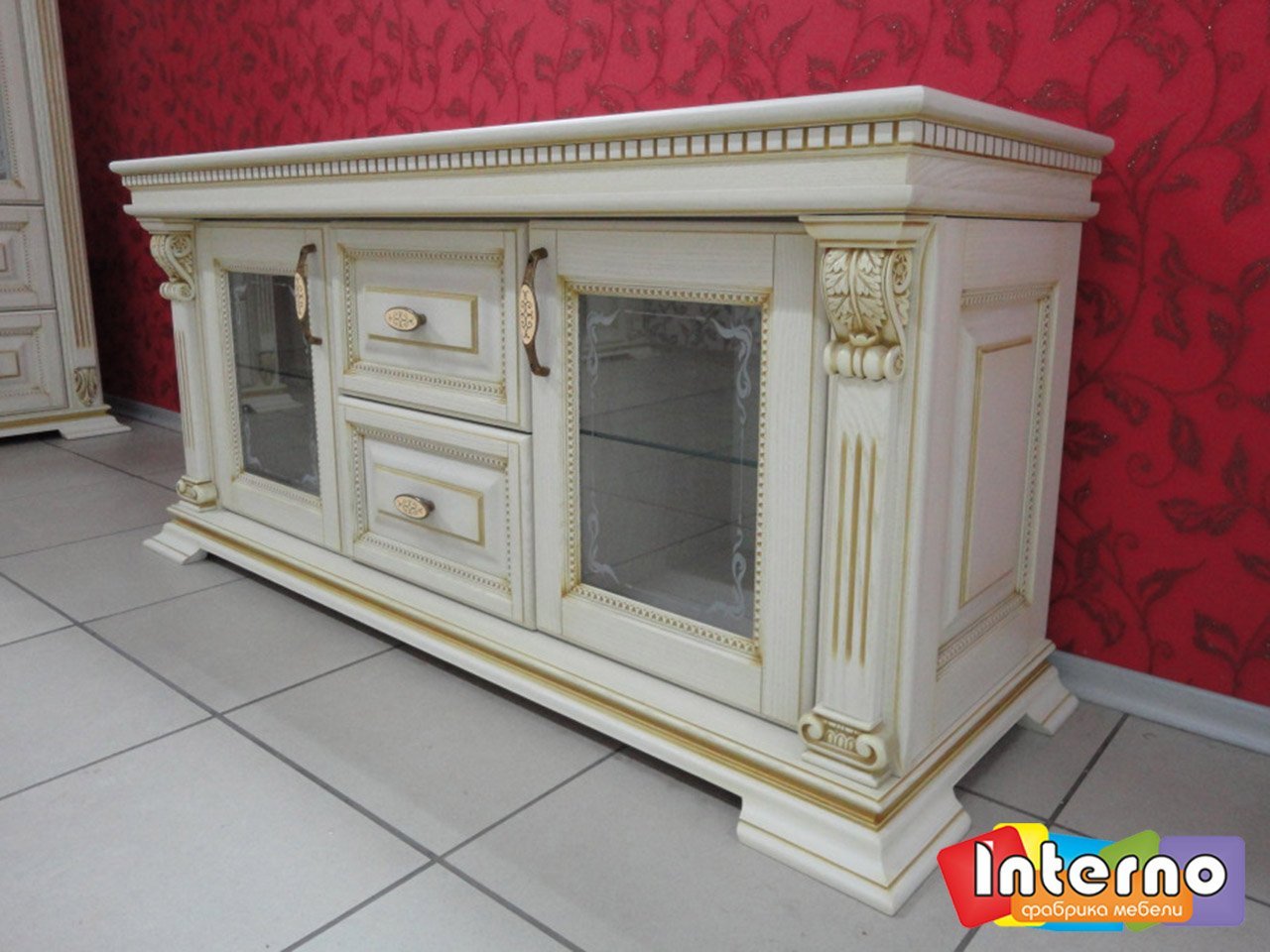 Тумба под ТВ классика белая с патиной золото