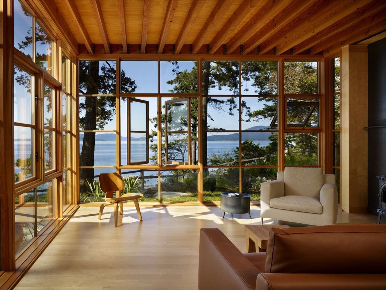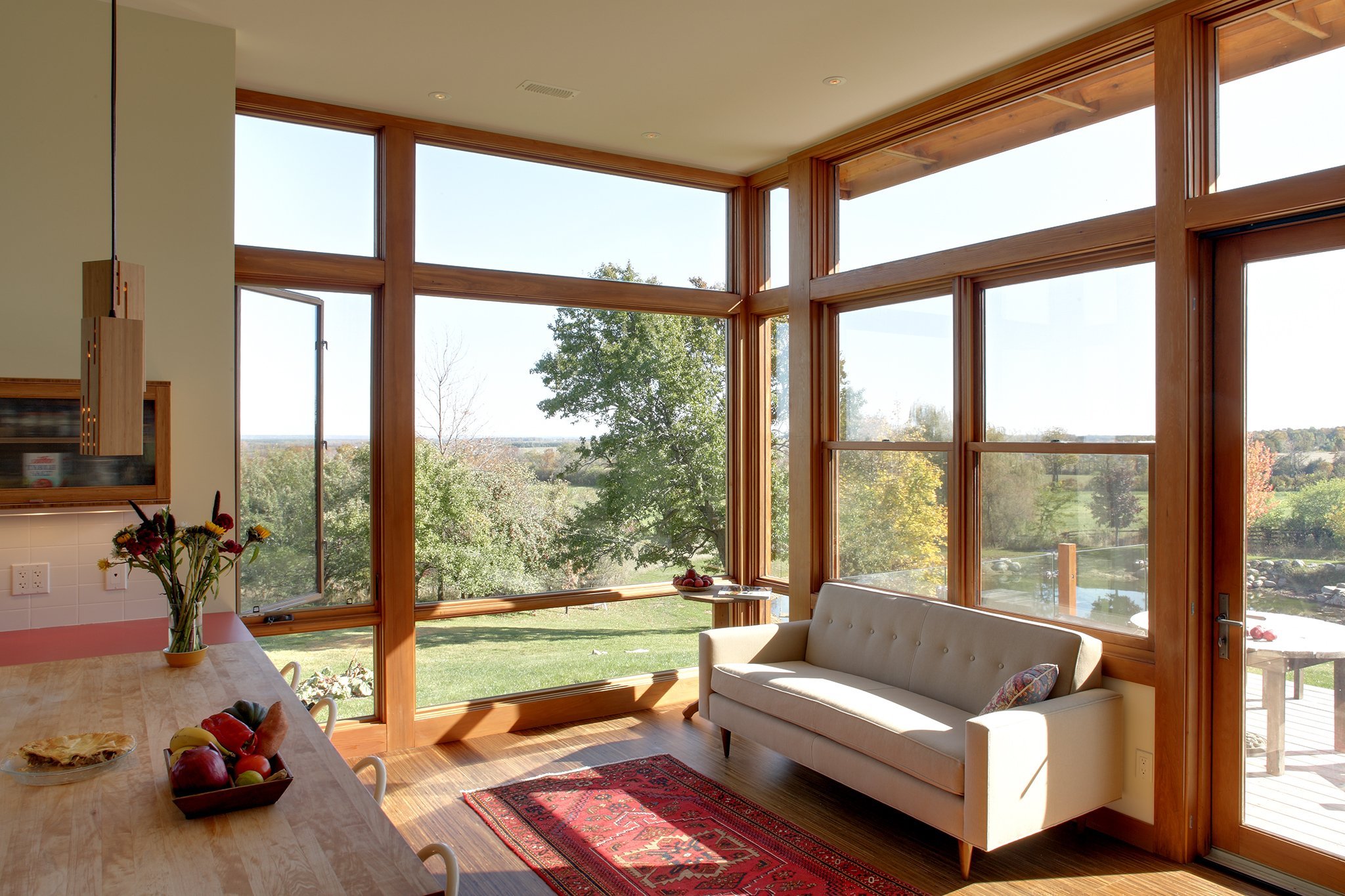 Большие деревянные окна для террасы